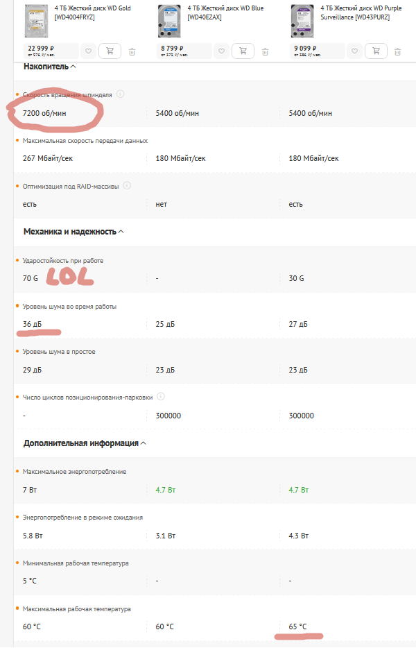 >хуета всё что скинули Ну давай я попробую (имхо тебе 4тб нужно): лучшее из худшего - очевидный 43purz денег больше, a диск один = es.3 (на виброгасах)