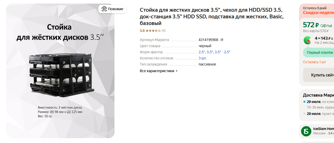 ну салазки да, можно на вб в корпусе у меня есть место под 3,5 но там прикручен ссд 2,5 через салазки но можно по идее ссд отправить в 5,25 через переходник но с другой стороны лучше все таки подальше расположить работающие HDD друг от друга вообще, кажется, я просто потом приду к одному диску на 3-4 Тб и все