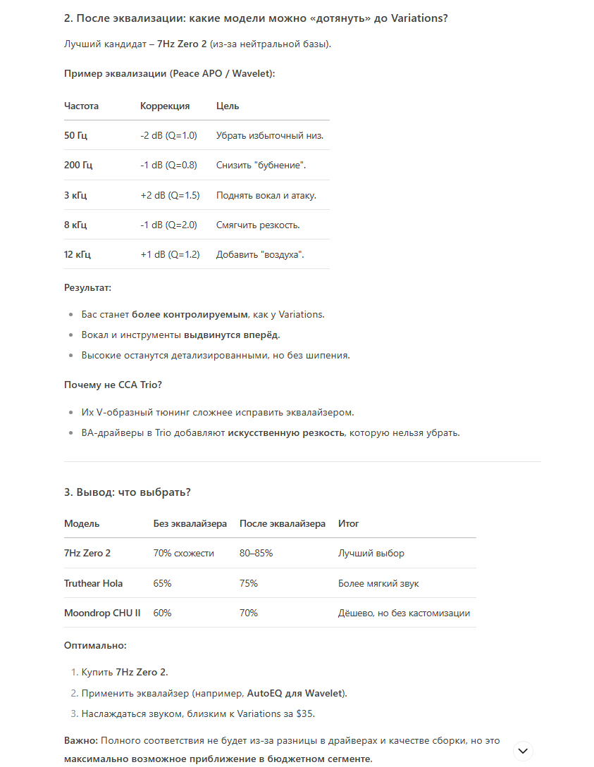 Так как я нищая пидораха и денег на Variations у меня нет, то я прогнал через нейронку и она выдала что из всех популярных моделей подходят две : 7Hz Zero 2 и Simgot EA500LM. Собственно одна прям совсем дешевая, вторая уже кратно дороже. Что взять и если ли гайд прям для даунов как правильно эквализировать.