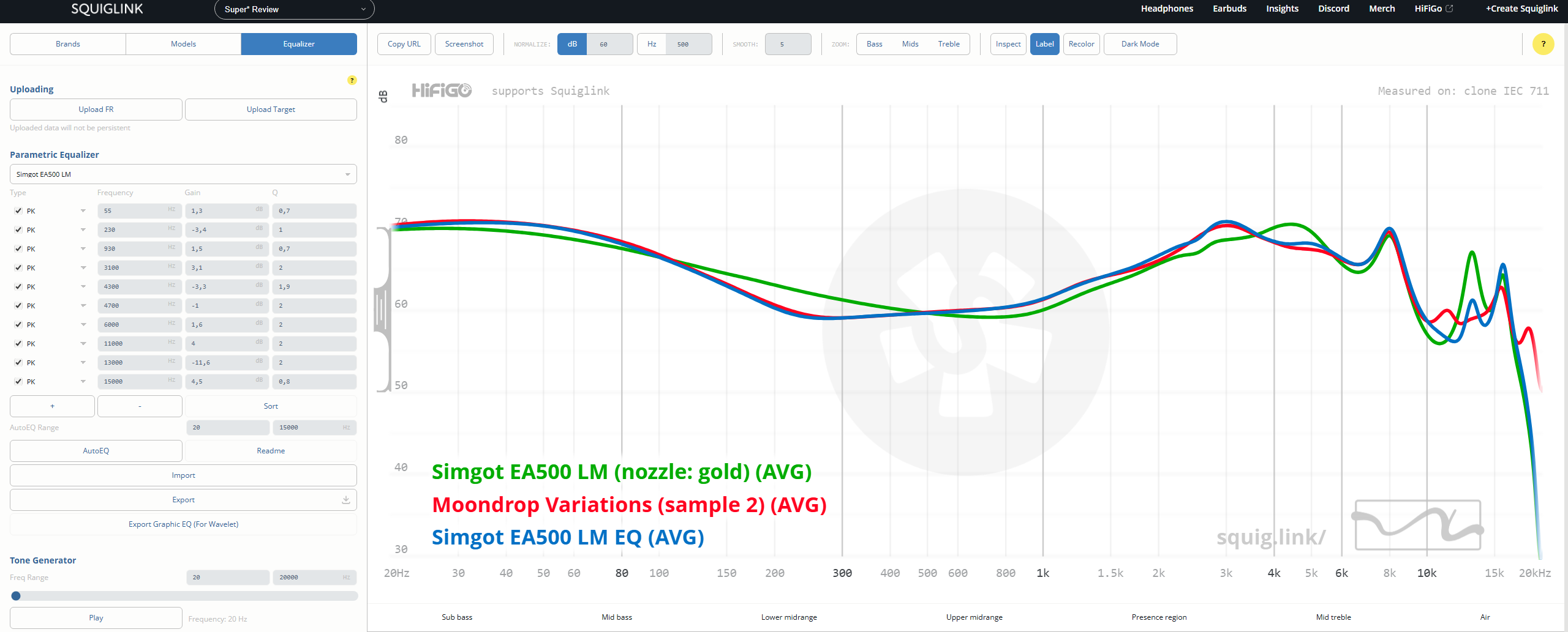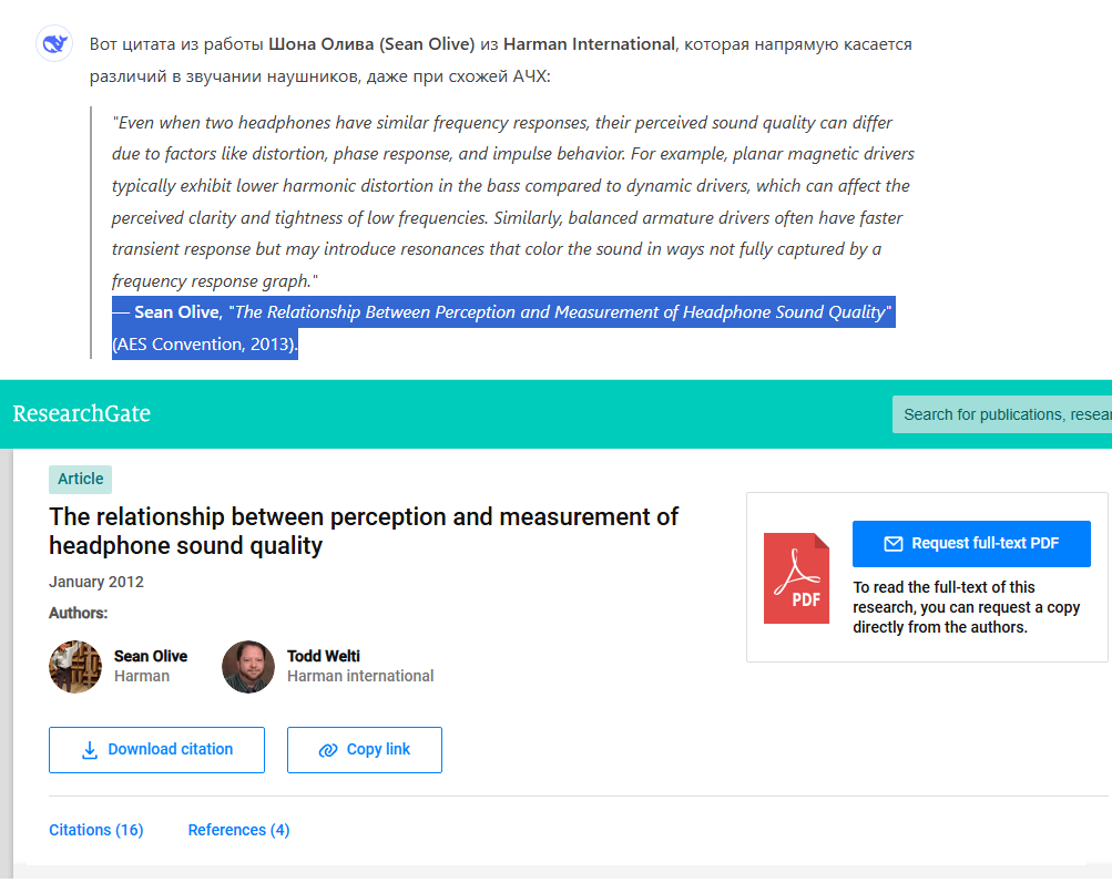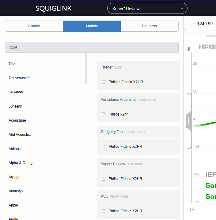Коррекция АЧХ: Хочешь больше деталей/баса/воздуха/сцены или просто улучшить звук? Грамотная эквализация обычно способна дать это https://peqdb.com/ - настройка под свой слух. Выбираешь в списке наушники, выбираешь режим AB slider, тянешь слайдер пока звук не станет лучше. В конце получаешь пресет. В меню шестеренки можно загрузить свою песню https://autoeq.app/ - пресеты под твои наушники. По умолчанию эквализирует в кривую Harman. Есть предварительное прослушивание результата. https://squig.link - Интерактивный браузер АЧХ + эквалайзер и тон генератор. Огромная база замеров. Качество замеров варьируется от ужасных до хороших. https://www.reddit.com/r/oratory1990/wiki/index/list_of_presets - авторские пресеты от oratory1990. Одни из самых точных и технически правильных замеров в общем доступе (за исключением пары косячных моделей) https://www.reddit.com/r/headphones/comments/1780005/bk_5128_graph_database/ - сборник замеров на B&K 5128 без исходников. Графики можно вытащить через UsyTrace https://rentry.org/IEM-EQ-Guide - подробный гайд по ручной эквализации (нужен VPN)