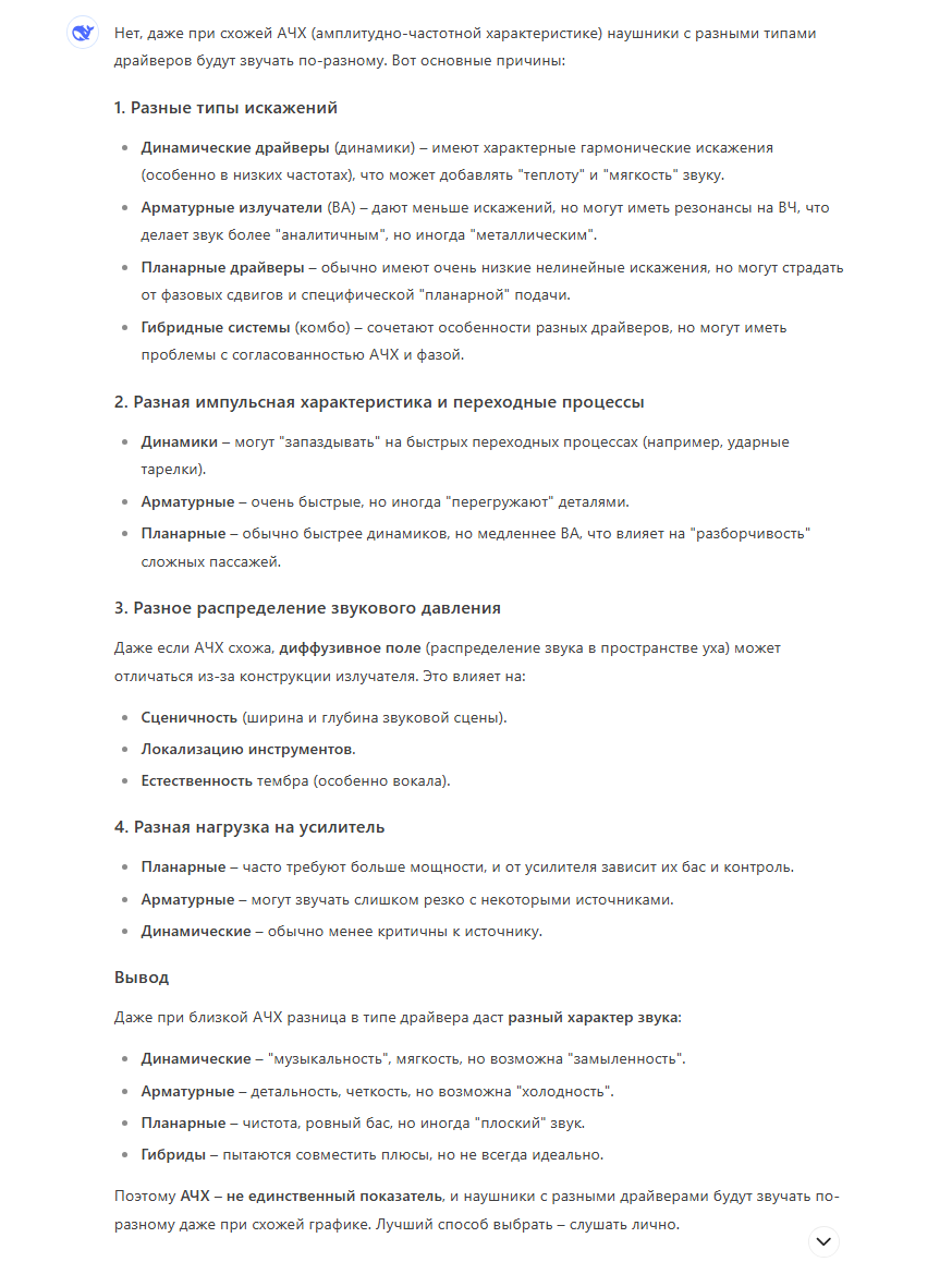 У них характер звука на высоких не спутаешь с динамиком ну никак. С арматурой еще возможно. Это сразу слышно, что там не динамик, если ты не безухий и имеешь какой-то опыт, выходящий за рамки ЕДС УЛЬТРАПРО хуеты.