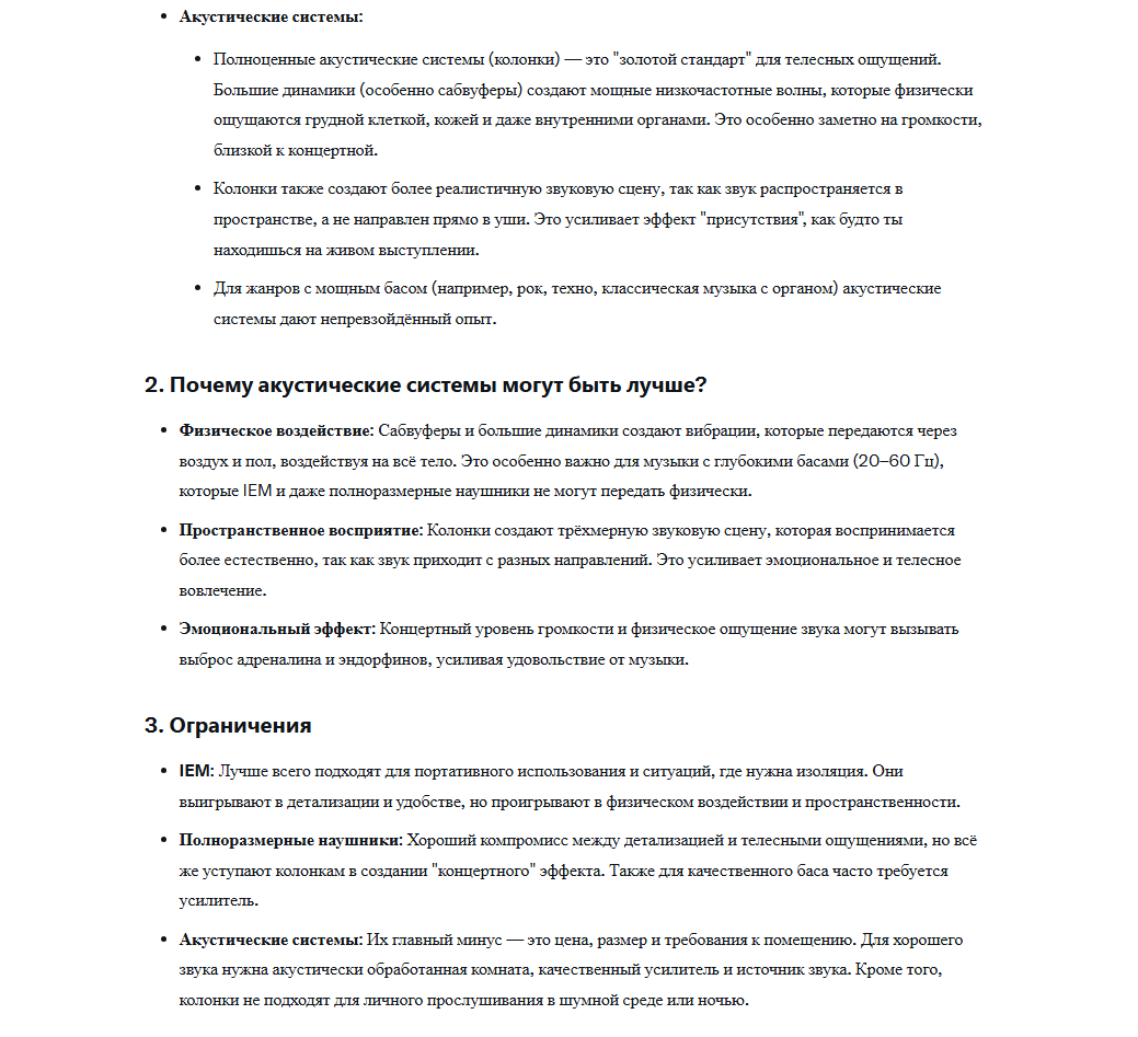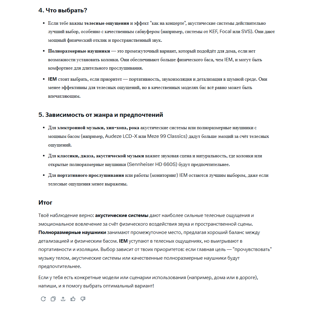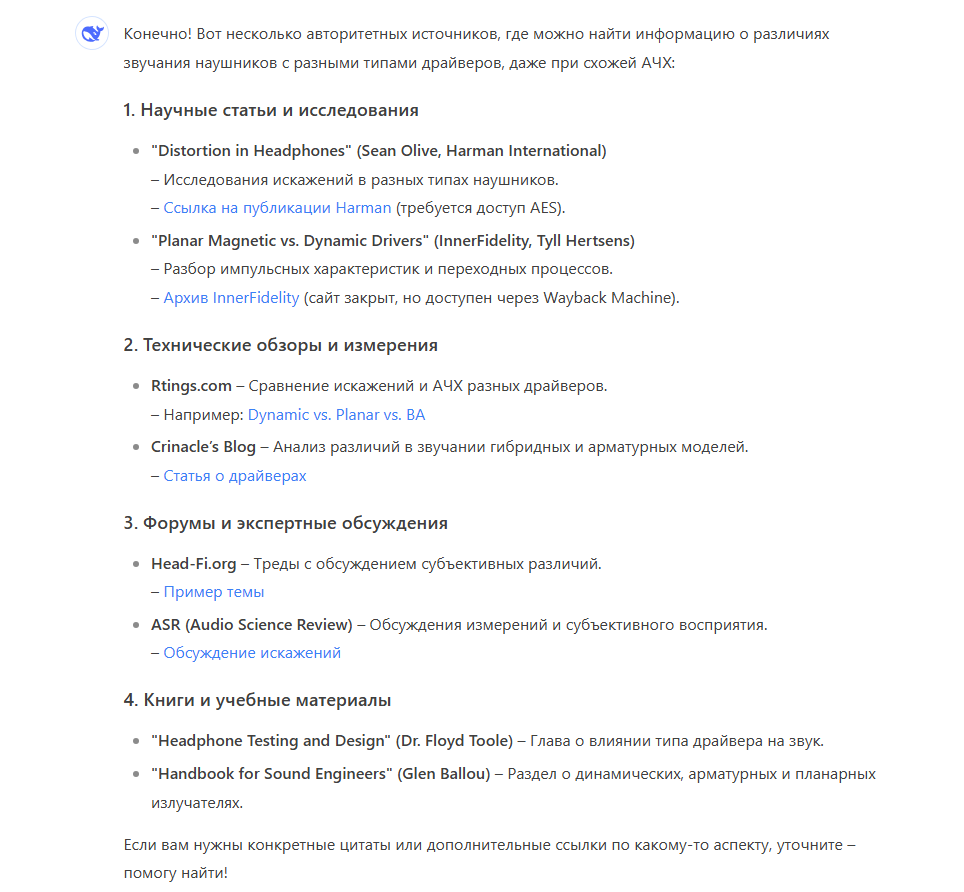 >>7441859 >1000 Taк это и есть бич сегмент кабелей 2пиновых. Nicehck Blackcat, Yongse 1947 - бывают по 700. >>7441812 > 7Hz Zero 2 Это норм. Хотя на симготы сейчас скидки, мне лично больше EA500 обычные вполне понравились, а LM версия не особо. Тут скорее разница в экспириенсе, потому что зеро2 ощущаются как игрушка из хэппимила, а симготы как довольно качественная и премиальная вещь. >>7441774 Планары это лотерея, почитаешь отзывы на FT1Pro там то же самое и жалобы что пердит на <30Гц с одной стороны. Еще общался с челиком у которого на DCA E3 мембрана сперва хрустеть начала когда двигаешь на голове наушники, а потом тоже запердела. Про Максвеллы одизишные тоже полно отзывов плохих. Хотя пердеж бывает от того что волосок или еще какая хуйня на мембрану попадает (с динамами тоже).