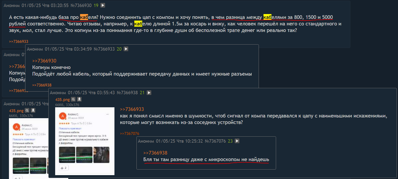 >>7441888 Вот смотри, у тебя провод длиной два с половиной метра, для ушей сопротивлением от 10 до 50 ом грубо говоря, для частот от 20 до 16000 герц, для передачи сигнала с минимальными искажениями, под постоянным механическим воздействием, еще и коннекторы должны быть нормальные. Схуяли он будет дешевый? Физику в школе учил вообще?
