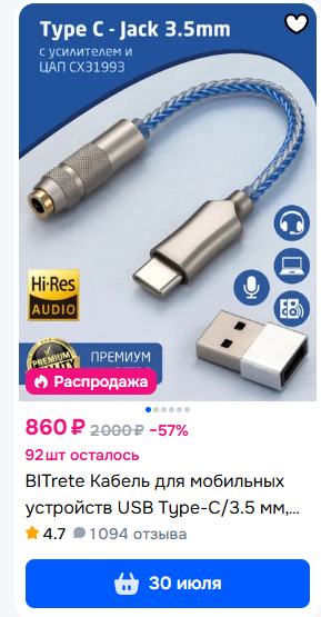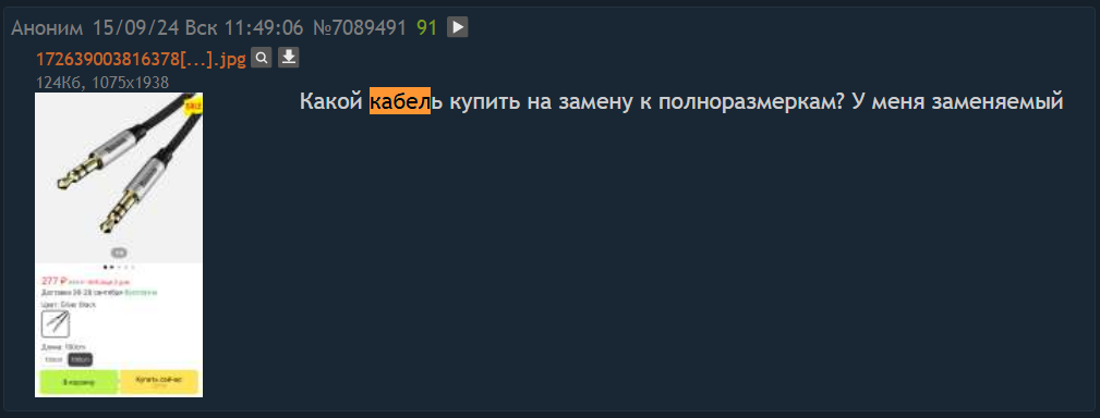 >>7442042 Друг, я таких советов давать не буду. Кабель это не то, что меняет как-то кардинально звук. Зайди на Али/Озон и посмотри нужный тебе, в нужной ценовой категории, с нормальным кол-вом отзывов и заказов. Кабель который я скинул - хороший, возможно у них есть модели с таким коннектором.