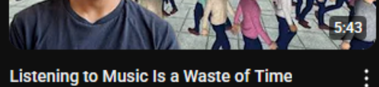 >>7456381 У меня был однокласник шиз очень буйный, он музыку не любил, говорил, она раздражает пиздец и делает его буйным. Я как-то послушал его наушники через, которые он пытался слушать музыку, и реально охуел, там кровь из ушей.