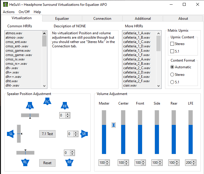 >>7457874 >Отзывов прочитал немного, на хайперы, рейзеры, стилсирис и прочие, и всегда найдутся те, для кого звук наушников за 30т.р кажется хуже, чем в китайских затычках из нулевых. Геймерские продукты это сплошное наебалово. Кресла в форме гоночных * которые ломают спину и не предназначены для долгого сидения. https://www.youtube.com/watch?v=pI4tDxRElWI Геймерские наушники это лгбт подсветка + кривой звук мешающий позиционированию. Единственный плюс это микрофон (и то можно купить отдельный микр.). Есть редкие исключения >>7458013 но у них тоже проблемы с софтом. >>7458047 7.1 это виртуальный звук т.е. все еще 2 динамика плюс софт для эмуляции 7.1. Но это уже давно бесплатно можно сделать с HeSuVi и Virtual Cable. Там намного больше функций и тот же "геймерские технологии" уже давно украли. Но сейчас самый лучший звук это тот что КС2 и другие шутеры уже используют в своих играх. Это HRTF. Он не только показывает разницу между лево и право но разницу между верхом и с низом.
