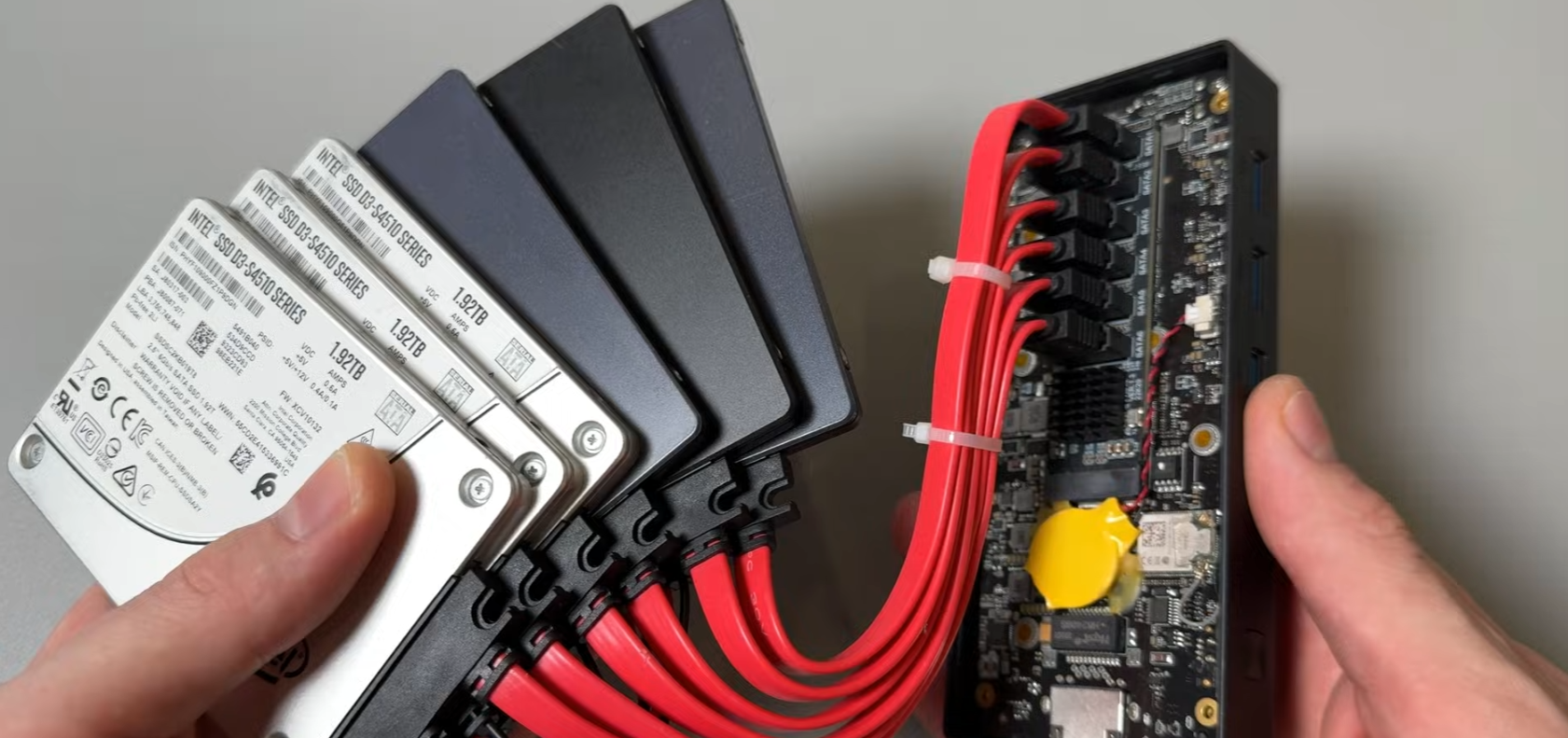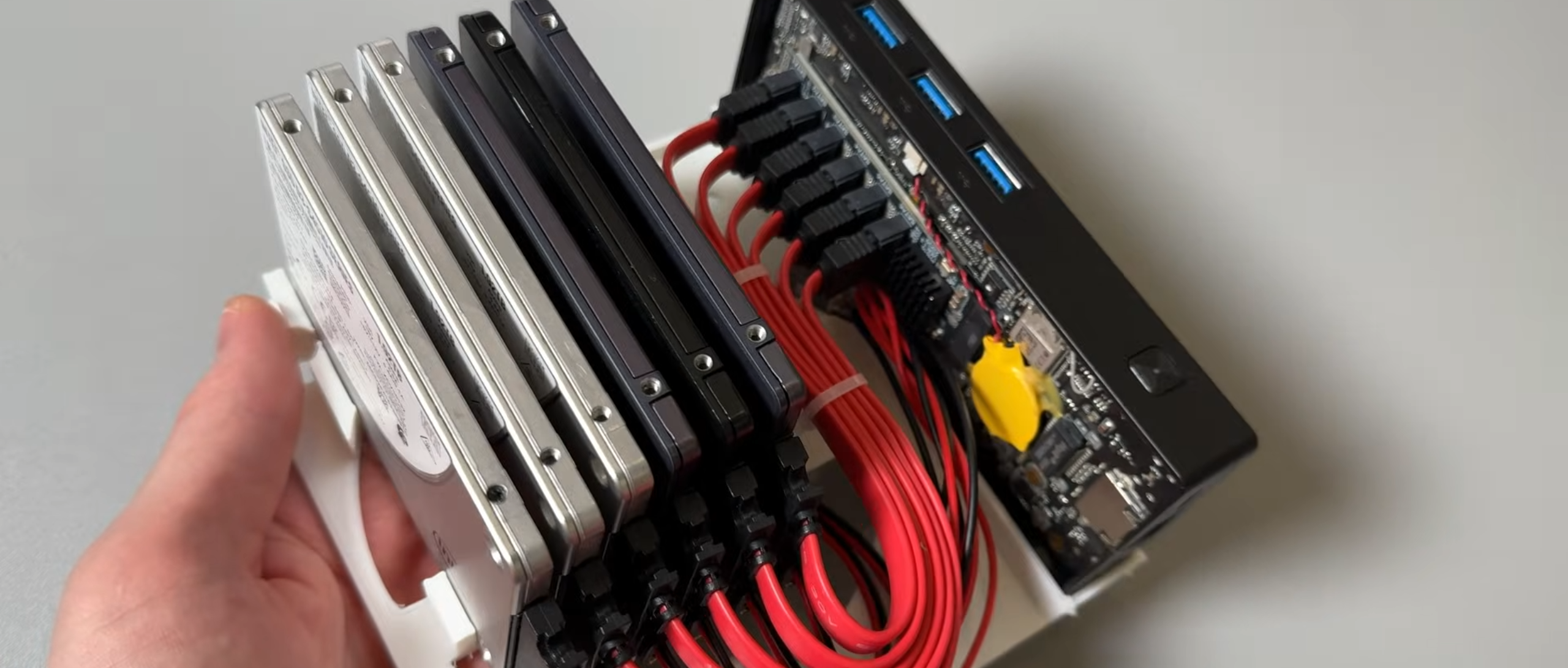Какой сейчас актуальный способ подключить пачку sata дисков к минику? Может есть какие-то приблуды типа насов, только для 2.5 дисков, но без мощного железа внутри? Сейчас у меня подключено 4 диска через пикрелейтед кастыли, которые воткнуты в юсб хаб с питанием. Все это как-то хлипко и ненадежно.