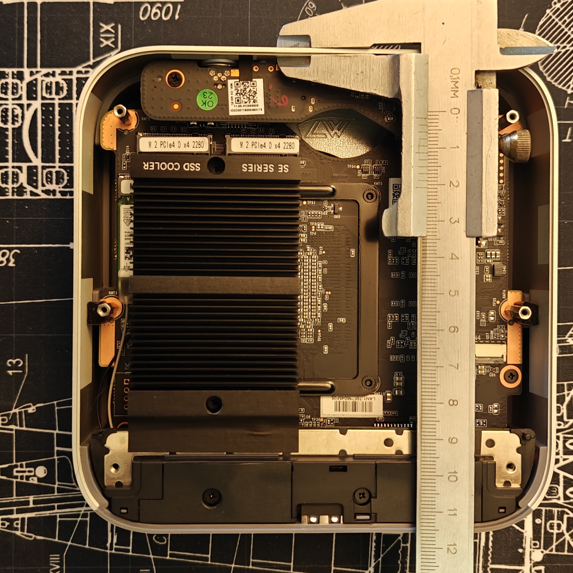 Габариты как у одноплатника. СО разборная, присобачу туда ещё пару теплотрубок. Ещё и недорогие и негорячие SATA SSD