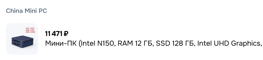 Хотел сначала RPi5 или OrangePi5, но ценники на них чот охуевшие совсем. С корпусами, БП и ссд выходит даже дороже и слабее разве что ССД быстрее, но нахуй он всрался такой быстрый