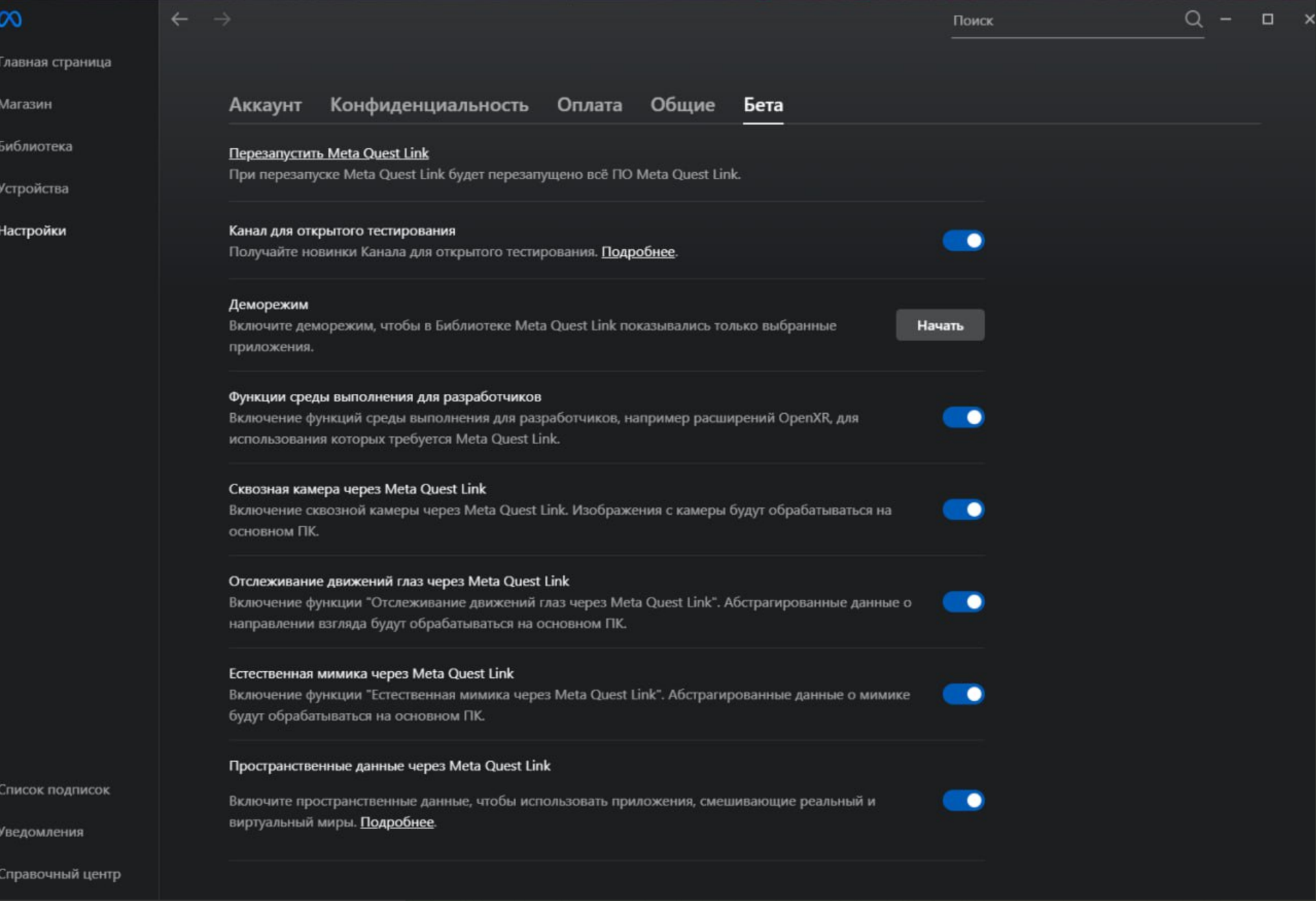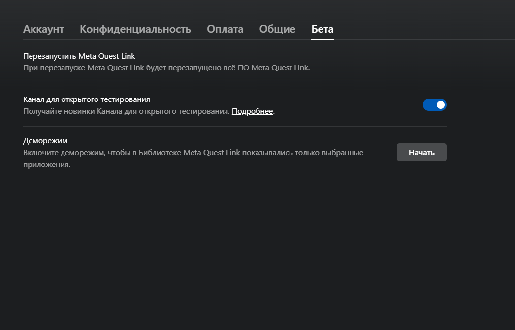 Поясните за пердолинг с квестом3. Включаю пеку, что-то там делаю, через какое-то время беру шапку, с целью подключить по кабелю. Приложение мета-линк на пеке запускается долго. Наконец оно запускается, включаю шапку, цепляю кабель, предлагает запустить мета-линк, и ни-хре-на. Или черный экран с логотипом меты висящим, или тот же логотип, но в 3D. Или просто пытается подключится шапка, но выбрасывает обратно, из этого черного экрана подключения, комп пиликает типа я кабель передернул.