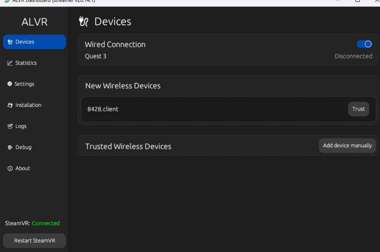 Заимел Quest 3S. После того как разобрался со всем, подключил и играл без единой проблемы, по проводу. Спустя пару дней, при игре изображение шакалит, лагает, отзывчивость никакущая. Отключил провод - ничего не изменилось, как будто оно работает по беспроводу, что мне вообще не нужно. В настройках показывает что пк подключен по проводу, но опять же - при отключении провода всё остается на месте - лаги, разрывы и тд. Как быть, господа?