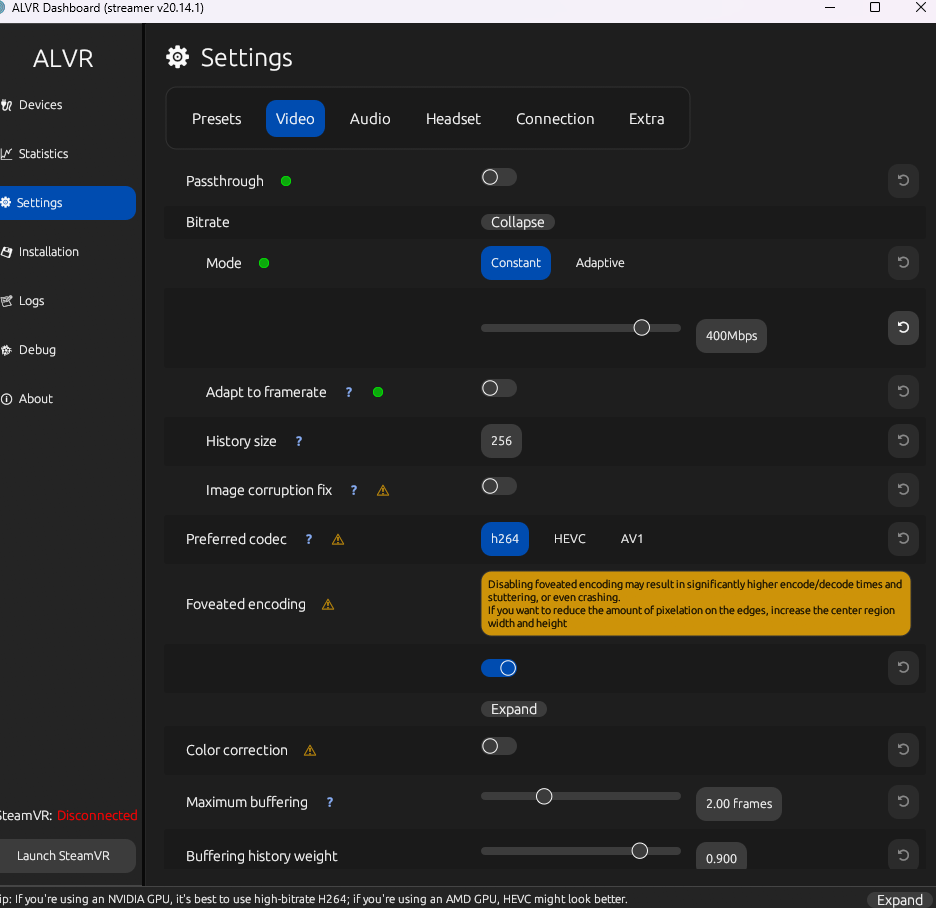 Пацы, сейчас сдул пыль со своего к3 и наконец то решил навернуть аликс, но местами при движении как в обычном шутере (я что долбоеб телепортом играть) замечаю что некоторые объекты в движении подлагивают. Хотя фпс вроде стабильно 120 держит, рендеринг показывает 150% и 100% в приложухе. Это дохуя и надо сбавлять? Или мб нужно уменьшить битрейт (500)? Играю по проводу, карта 4080. Алсо че то пробую убавлять разрешение в мета линке и в дебаг тулзе, но fps vr все равно показывает 150 + 100. И как блядь скриншоты делать нихуя не пойму?