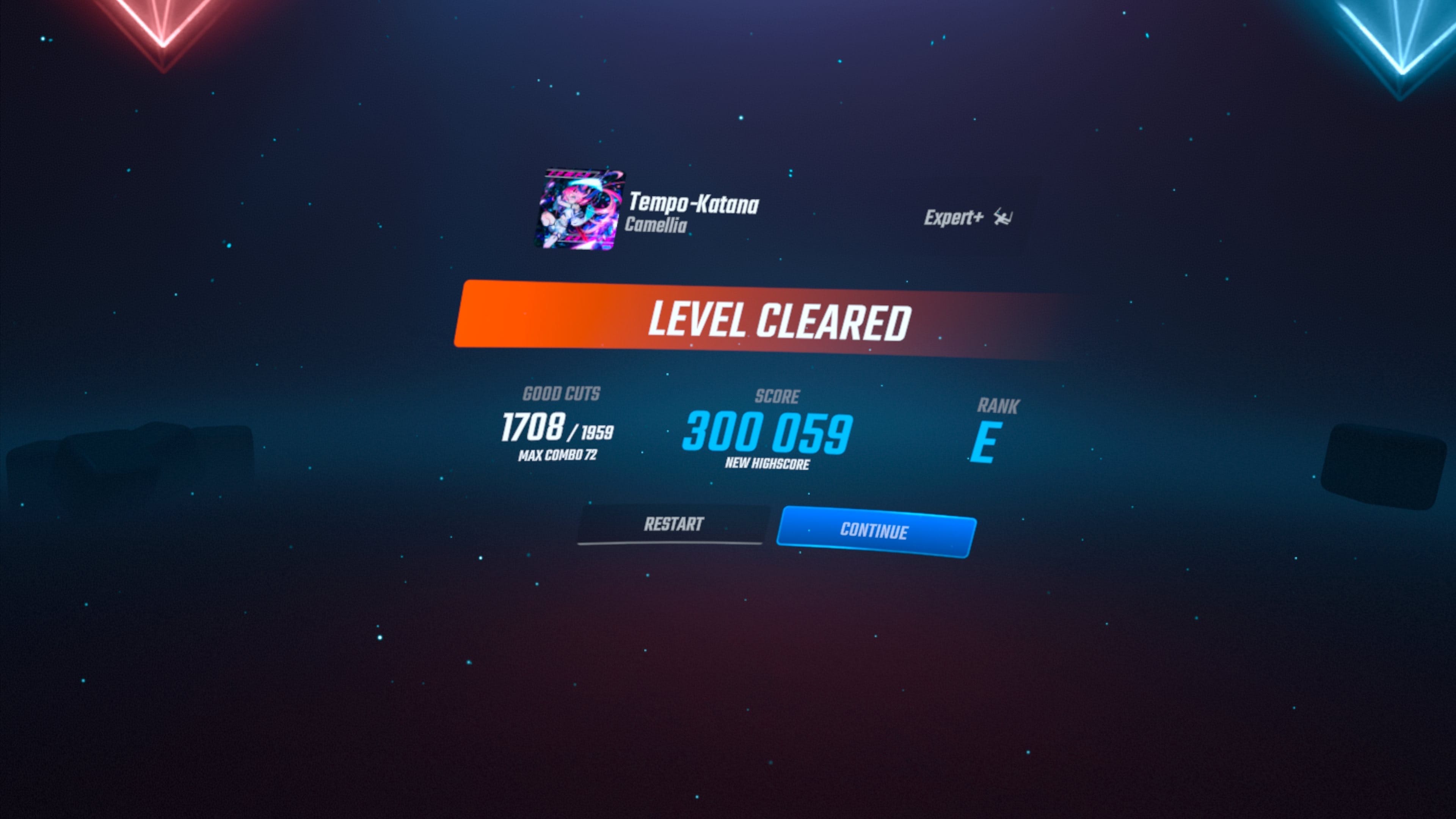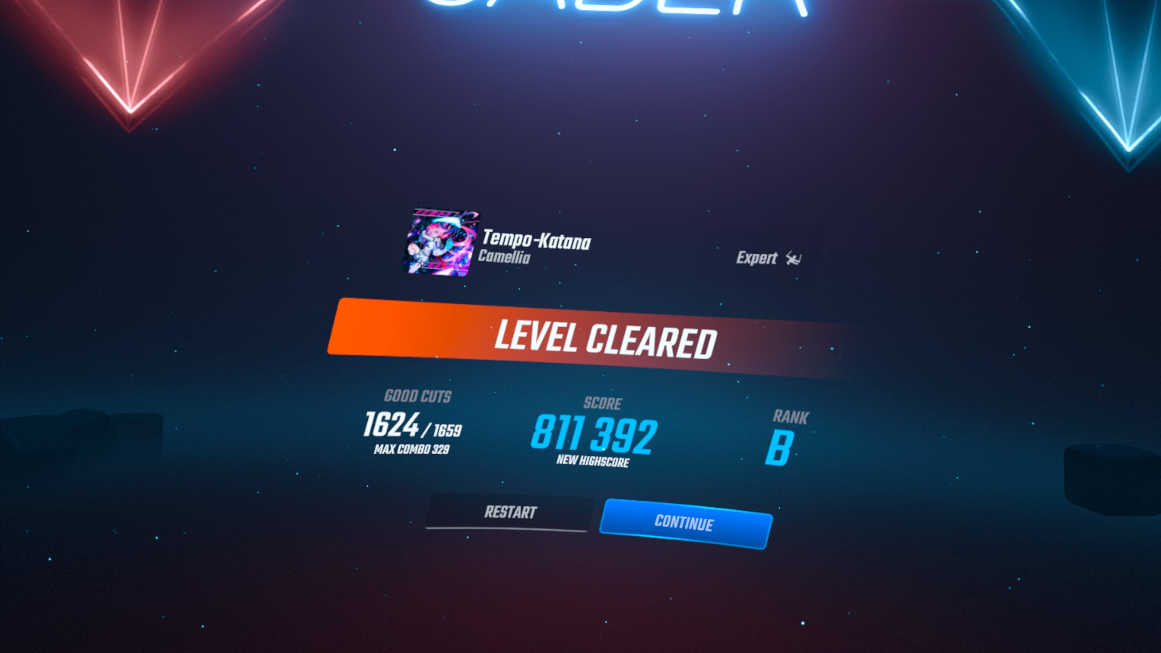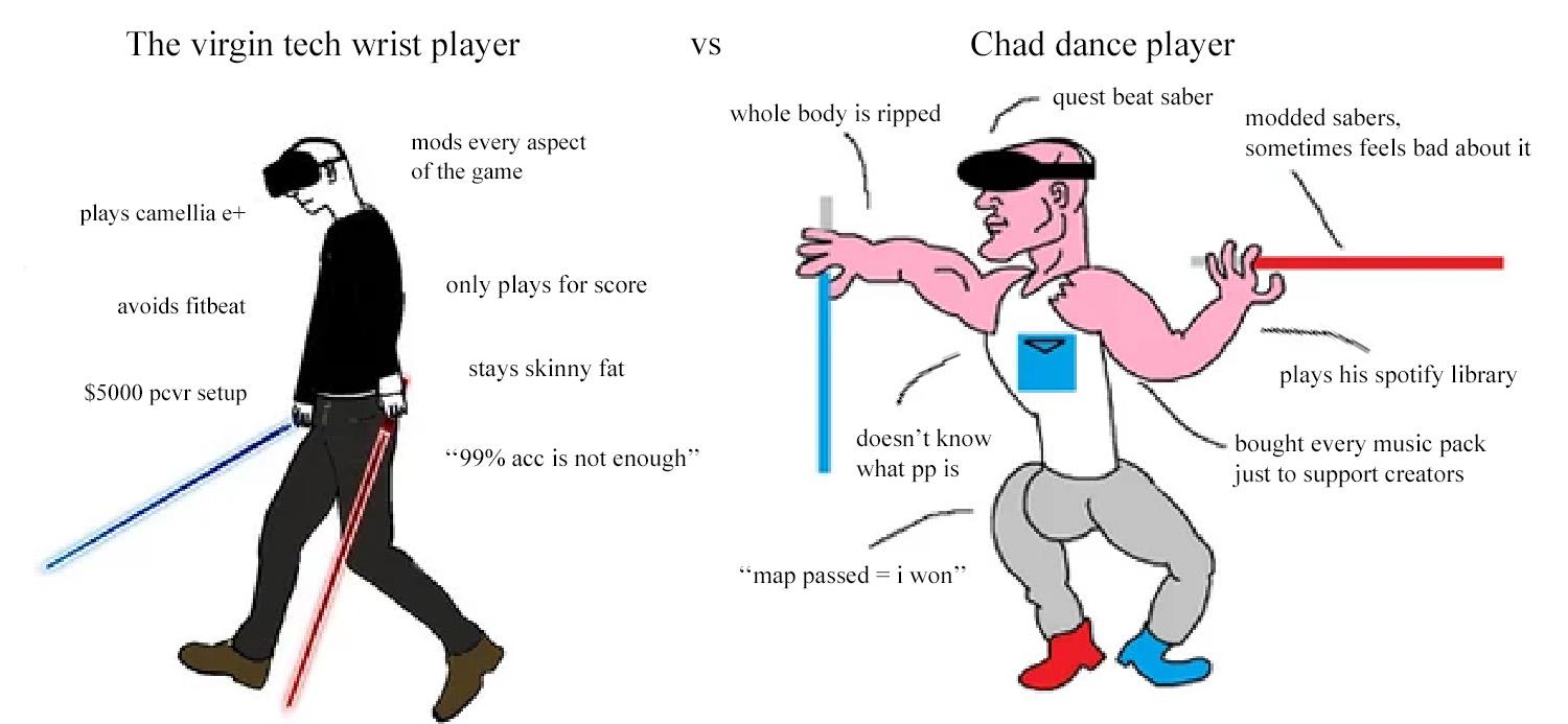 >>7447077 >как будто мой предел это где-то 4 Если только начал, то норм. Где-то до 6-7 играется фаново, а вот что-нибудь ближе к 8 - уже все, стоишь как столб и дрыгаешь кистями, иначе не вывезти. Я больше по сложным/интересным движениям угараю, поэтому дафт панк - любимый пак. Собственно, поэтому же я котирую synth riders. Там нужно не только руками махать. По геймплею в bs к ним ближе всего fitbeat-карты.