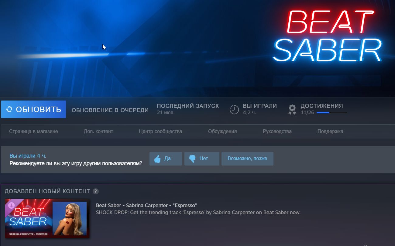 на данный момент у меня в шапке (пико4) пиратка, но туда кастомки я не могу зашивать, а кастом песни это самое интересное ну и пиратка на пк, там можно заливать кастомки, но если вот выходит например тип скинул новый шок дропс, или какие то обновы, то это гдето надо искать новую версию, снова на нее пиратки лить и тп
