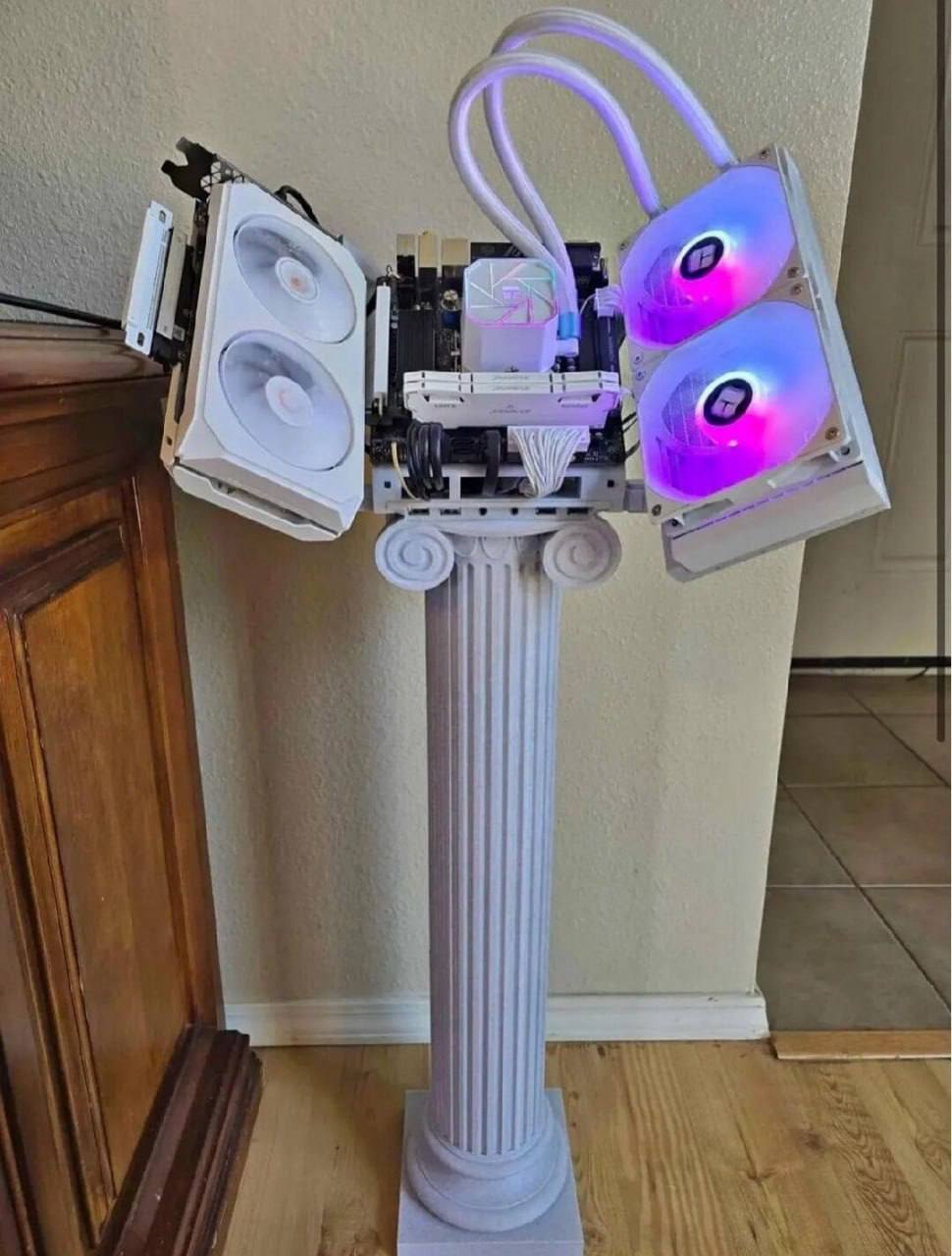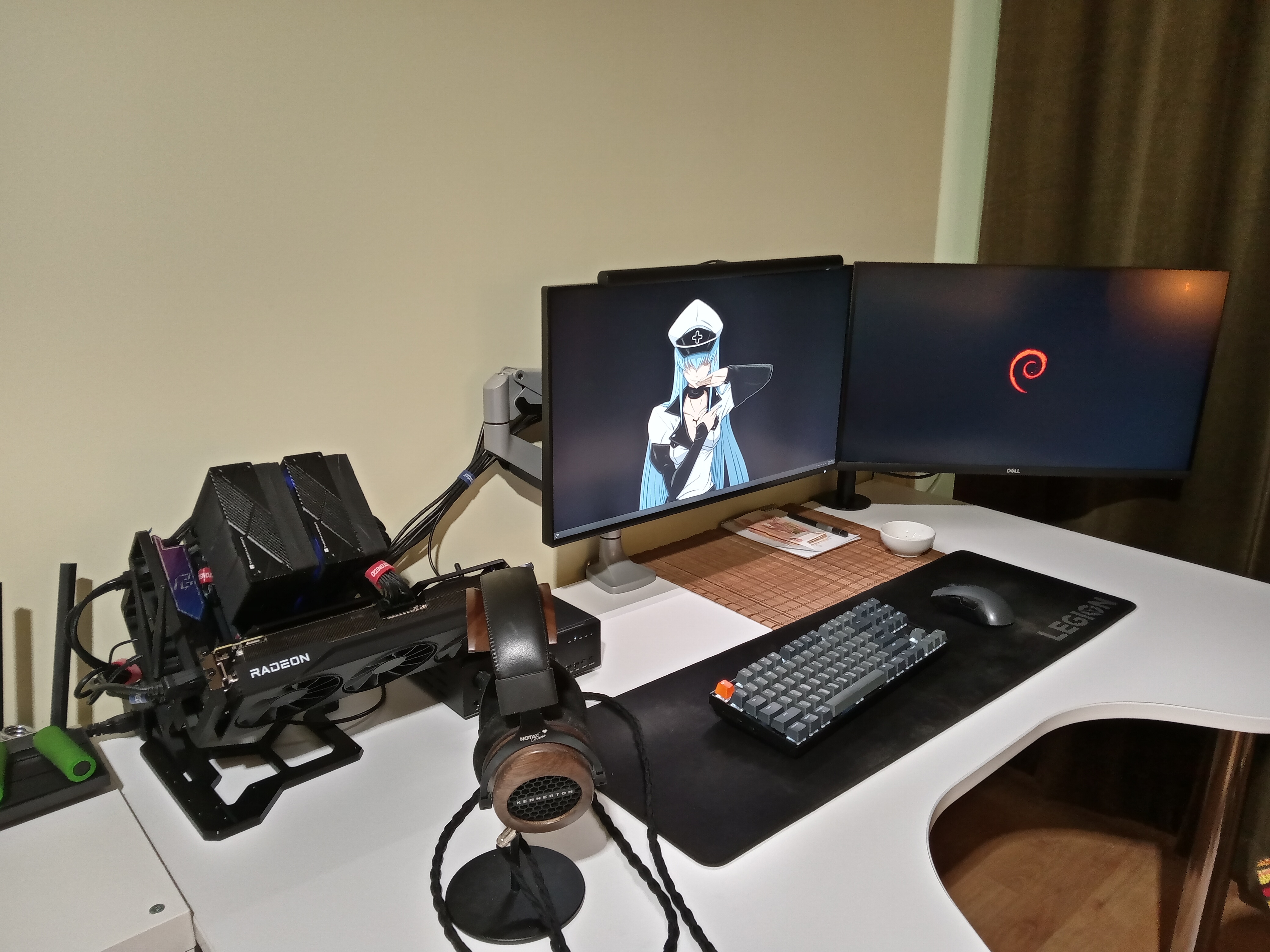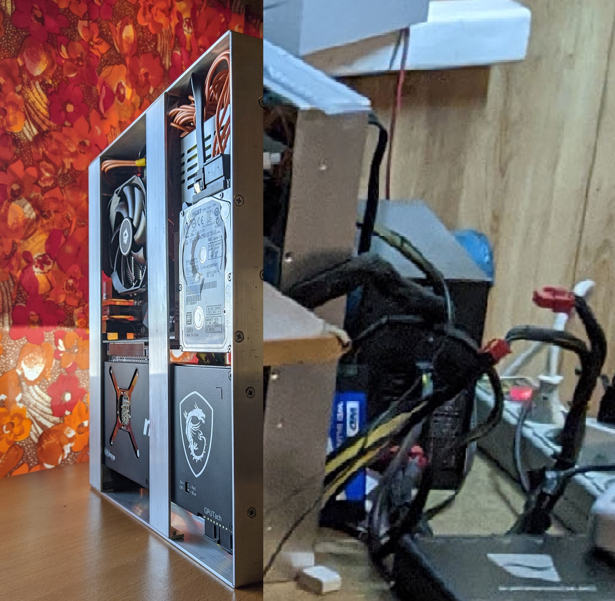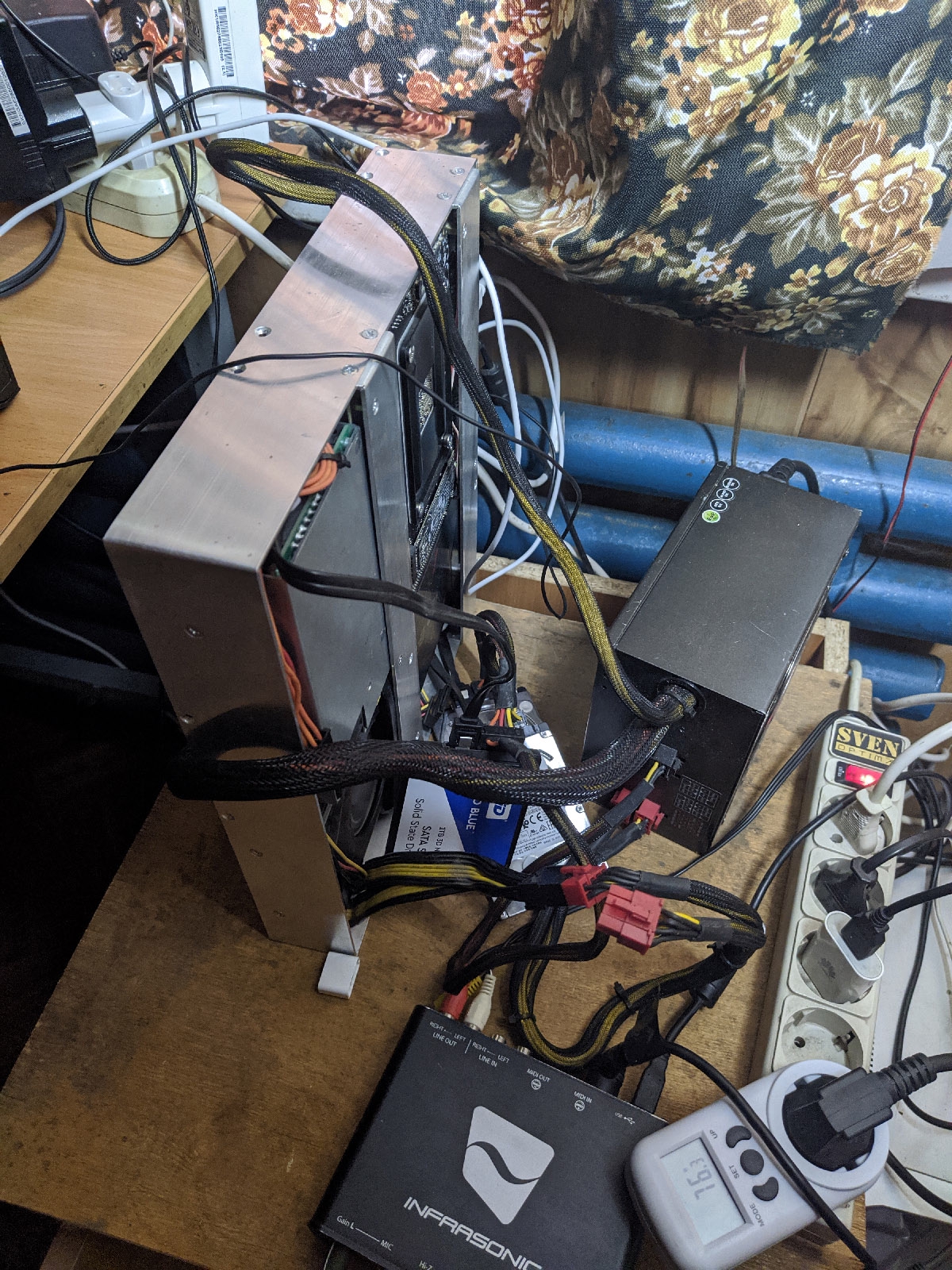 >>7452092 >)) Что он хотел этим сказать? Идея отличная, всем советую так же делать. Буквально решение большинства проблем. ГПУ не проседает, пыль не всасывается, места не занимает, отличные потоки воздушные, потенциально лучшее подавление вибраций (у меня на подушке из пенопласта лежит), лучшая устойчивость, в моем случае так же полная изоляция от стола, что защищает от залития там и всего такого, от животных и детей тоже защищён в таком положении.