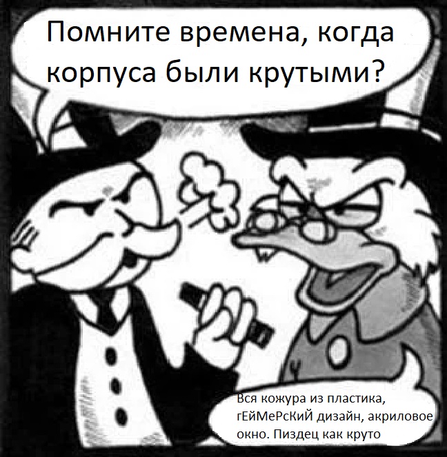 В этом вся суть, мой маленький ретроград, говнокейсы из десятых надо было прожить в десятых, вспоминаю эти уебища как страшный сон, хотя меня чуть не упиздели дефайн взять Современные во всем лучше, проще в сборке, пару хардов до сих пор есть куда всунуть, дисковод купи внешний и не еби мозги Ну, либо копайся в бушке в поиске старой хуйни, в которую уже все наигрались