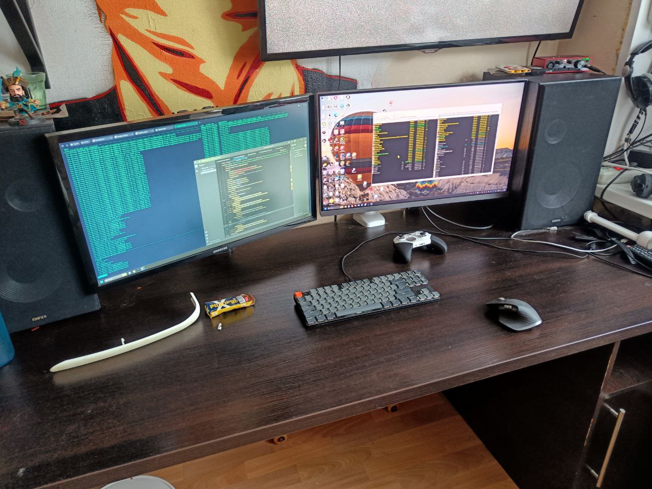 Хуй знает что вы бесоебитесь. Начали срать, когда увидели в моем посте >>7450530 колонки. Но там еще 2е наушников, есть и третьи в которых я играю с посонами в дискорде logitech g pro, но обычно их девушка на своих созвонах использует, поэтому их не видно в кадре. Итого - смотреть фильмы и ютубчик, страдать хуйней по дому, включать музыку на фоне, играть вместе в игры это на колонках. Когда надо не мешать никому дома - сидишь в наушниках. Хоть усрись вдвоем очень тяжело в одних наушниках сидеть когда надо посмотреть кинчик.