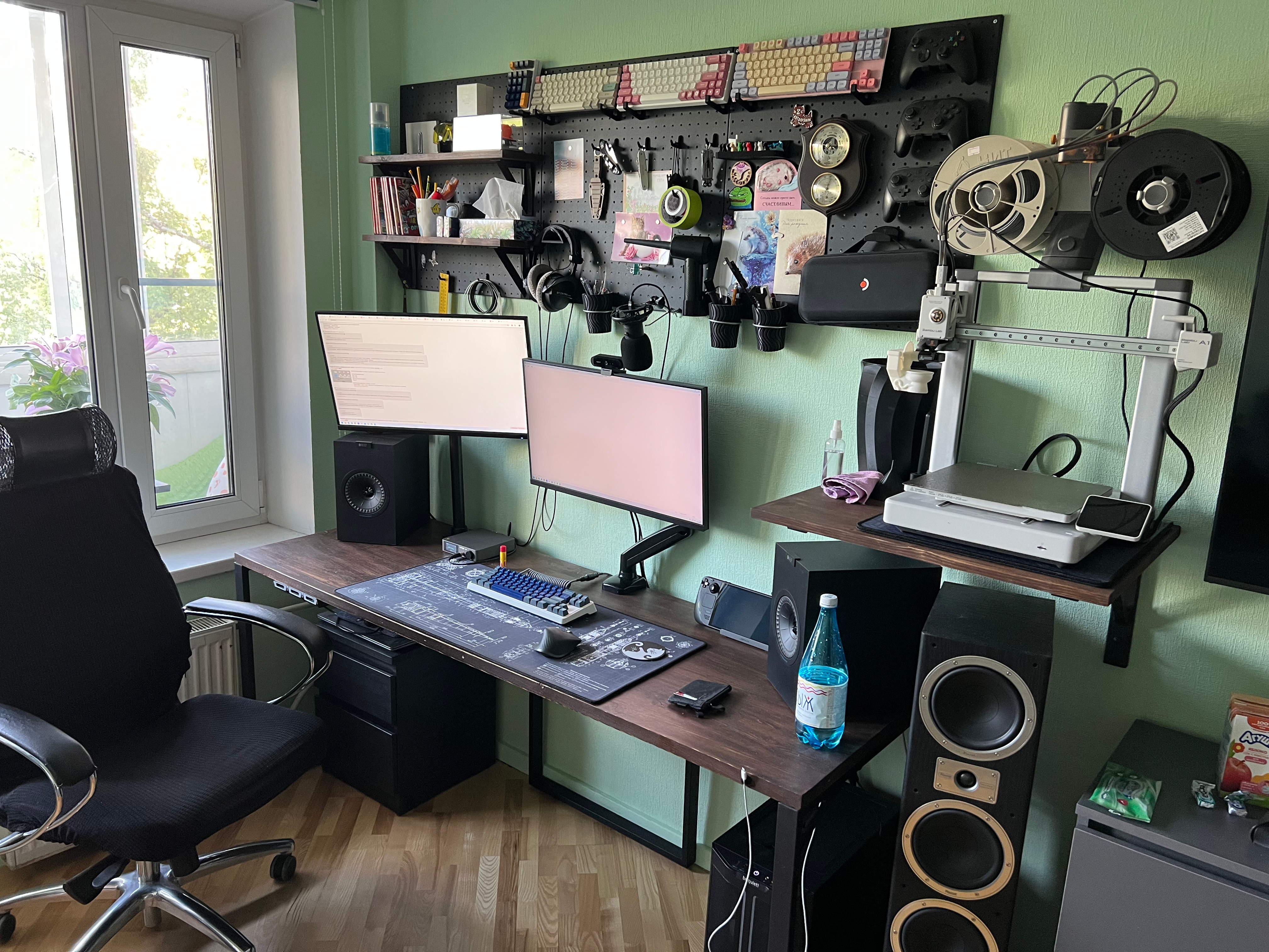 Какой стол выбрать? Зависит от вкусов. Есть сотни разных столов в разных исполнениях, разной ценовой категории и из разных материалов. Заходишь в любой мебельный магаз (типа Hoff) или на маркетплейс, выбираешь, заказываешь. Стол усредненного сыча - из лдсп/мдф размером 80x160см, чтобы хватило места и барахло свое по столу разложить, и мониторы расставить, и жрать за ним. Собрать такой можно изи самому: столешница на маркетплейсах стоит 2-5к, подстолье (ножки) стоят 2-3к. В сумме выходит меньше 10к за стол. Если есть деньги, советую сделать стол посолиднее: покупаем массив дерева (цена зависит от породы), покрываем лаком/морилкой/краской, покупаем более устойчивое подстолье. Наиболее подходящие породы дерева для стола (имхо): дуб, бук, ясень, лиственница. В сумме можно уложиться до 20к за такой стол. Идеальный вариант, когда есть деньги и время - скрафтить стол самому, с полочками, xyeлочками, ящиками и т.д. Это практически не энергозатратно с учетом того, что эскиз будущего стола и его размеров можно накидать в паинте/автокаде, а потом в любой столярке или в мастерской Леруа напилить их. После этого остается только прикрутить всё шуруповертом на уголки. Идею для дизайна стола проще всего подсмотреть на тех же сайтах мебельных магазинов или у анонов из прошлых тредов.