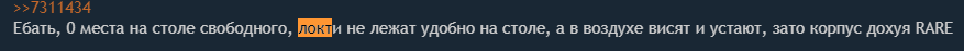 >>7452779 Локти и не должны на столе находиться. На столе должны лежать руки, но не сами локти. Кость не должна упираться. Ты че как маленький. Посмотри пикрил как надо.