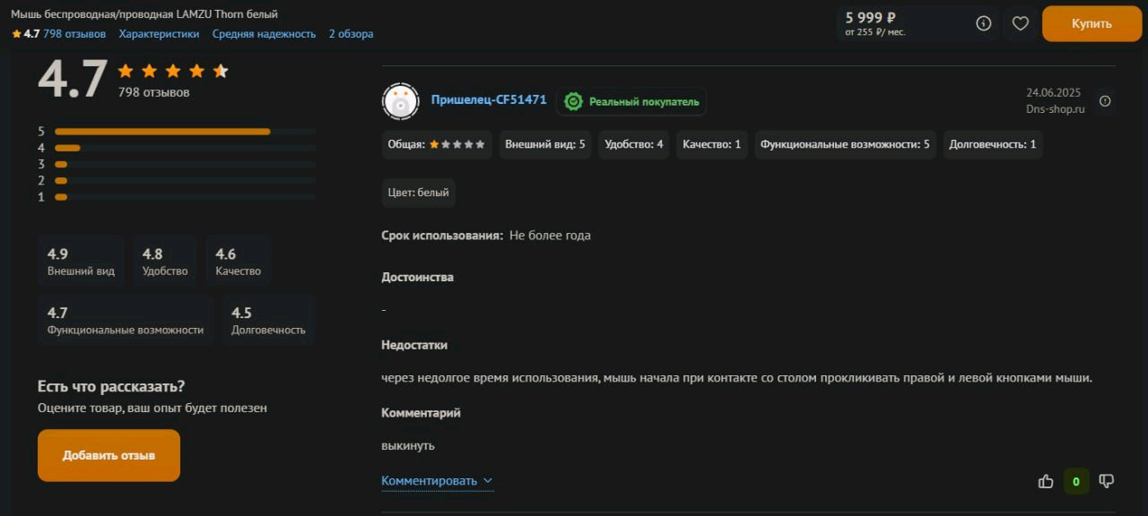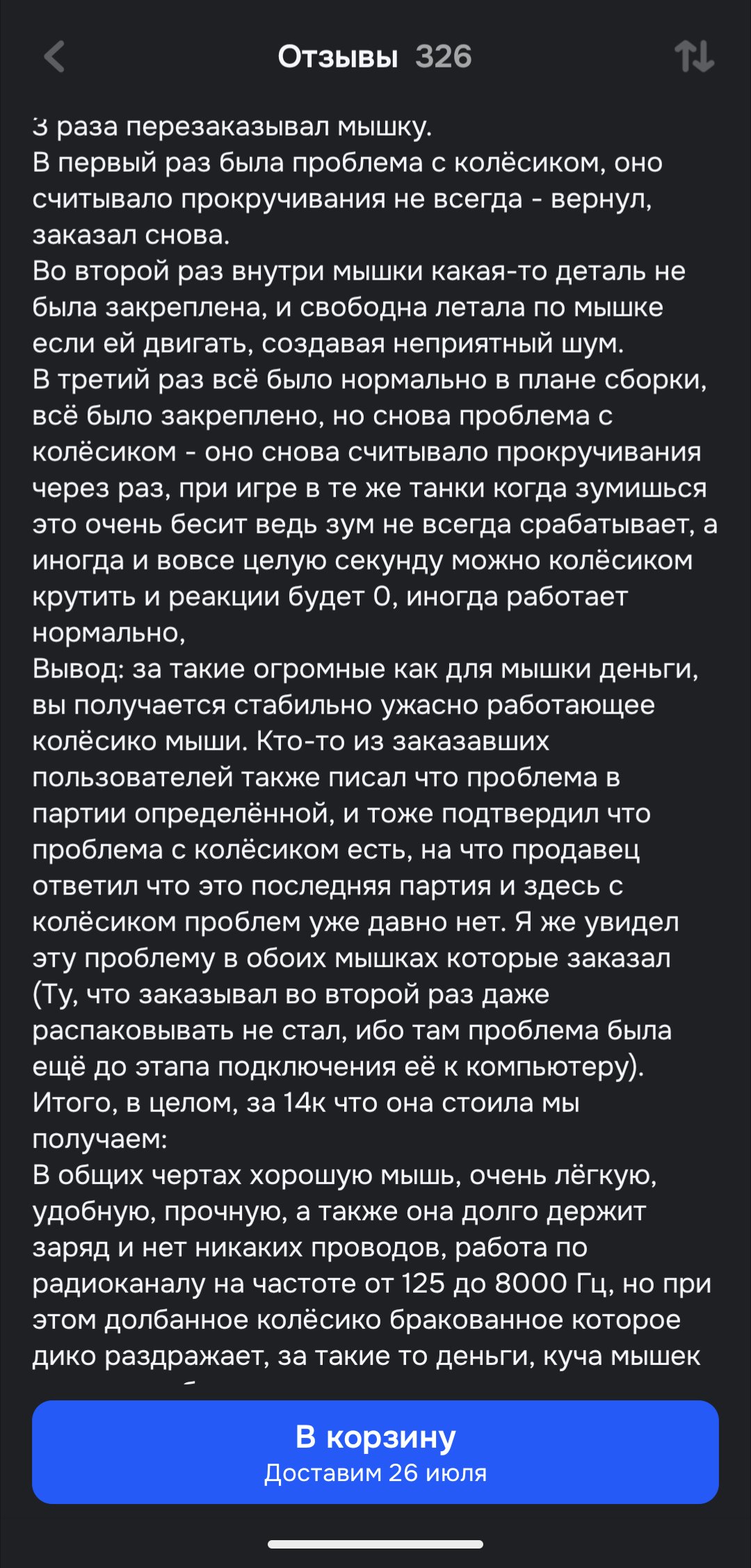 Взрослому человеку в похуй на ваши тренды, топы за свои деньги, чего там ваш кумир на ютубе рекомендует, нужна просто мышь, которая не будет ебать мозги, если она стоит дороже китайских подделок с кастрированным софтом и продается в местной рознице без ожидания и с гарантией - окей, упаковывайте, переживу я твою детскую истерику