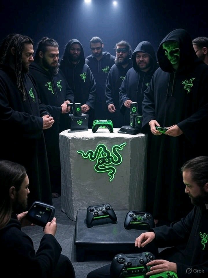 Razer — не бренд. Это культ. Это вера. Это злобный, сияющий в ночи зелёный глаз, что ведёт тебя сквозь шум маркетинга к подлинной мощи.