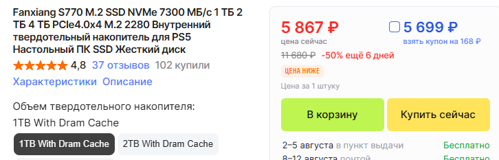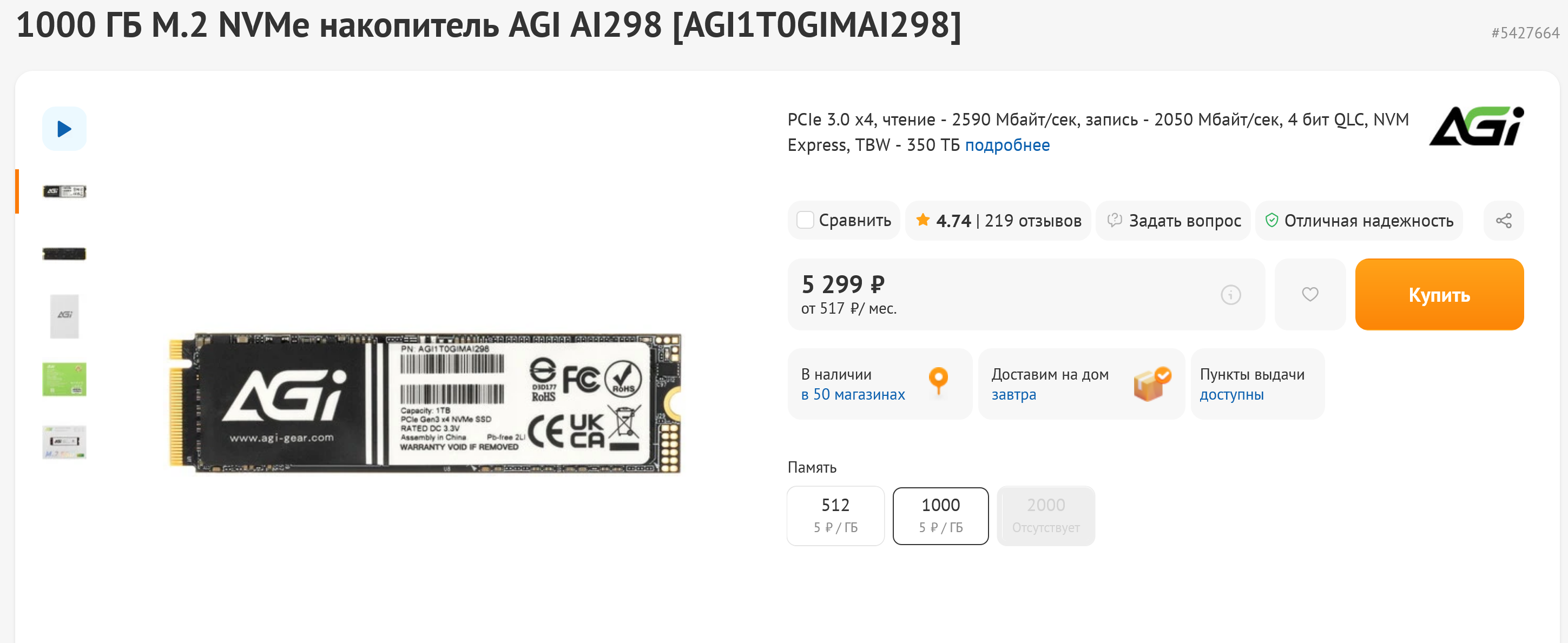 Ты прям щас можешь пойти и купить там меньше чем за 6к дексповский ссд