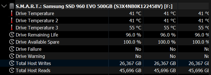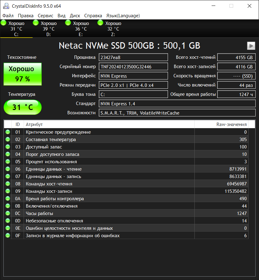 >>7475472 Бред несешь очередной. Ошибки в нвме логе легко посмотреть >>7466236 И да, смарты для nvme дисков стандартизированы, в этот параметр попадают только ошибки, а не "записи". Нахуй распространяешь дезу если не разбираешься в вопросе?