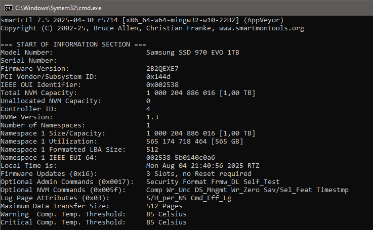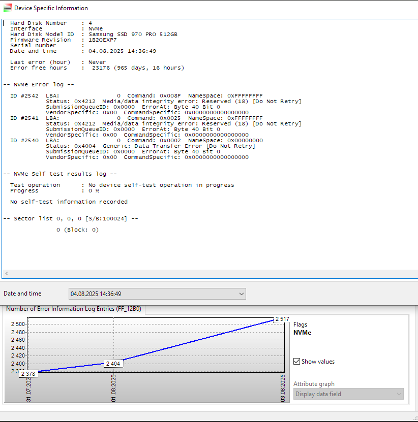 >>7475498 Лучше распознай как смотреть лог ошибок nvme и зачем этот параметр нужен в смарте, прежде чем пытаться излагать свое важное мнение по вопросу работоспособности ссд.