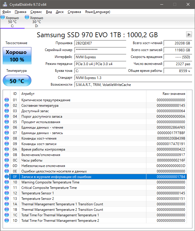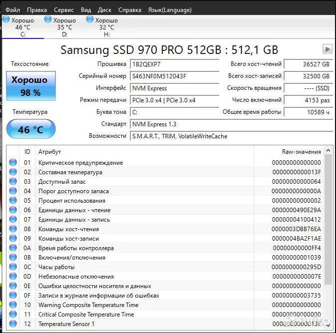 >>7475486 >Судя по этому скрину SSD давно должен был отвалиться и сгореть к хуям В чем логика? Ты стекломоя навернул? >Но вот незадача, SSD прекрасно работает уже 4 года с такой херней. Как и должен. Только вот на нем стоит контроллер который серит ошибками в лог. >Врет явно программа, которая не может правильно интерпретировать содержимое записей. CDI не учитывает 0F при определении работоспособности диска(и правильно делает). Те параметры, которые она учитывает, ты можешь узнать, кликнув по показателю здоровья >Ну и самсунг, конечно, "молодцы", что никому не говорят, что там внутри на самом деле и как надо интерпретировать. Самсунг сделала контроллер который срет ошибками, и поправила эту проблему в следующих контроллерах. Ты бы это знал, если бы у тебя был ссд на Elpis/Pascal/Presto/Piccolo
