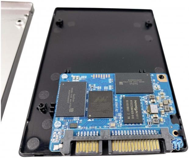 Но если снять стикеры и наклейки, то под ними окажется 12-нанометровый контроллер Maxio MAP1602A без буферной памяти DRAM, но с поддержкой PCIe 4.0 (аналогичный используется в Acer Predator GM7). Чипы флеш-памяти – 128-слойные TLC NAND с объемной компоновкой от YMTC. Хотя Samsung в своих SSD использует собственный контроллер и чипы памяти.