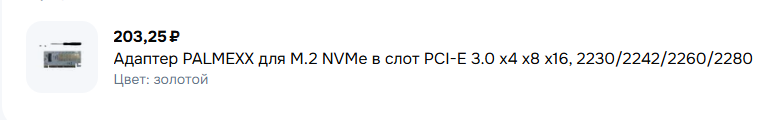 >Вопрос таков - слот есть только под видивокартой Псие слоты есть свободные? Можешь воткнуть через НВМЕ-ПСИ-Е адаптер например. Адаптеров всяких разных полно.