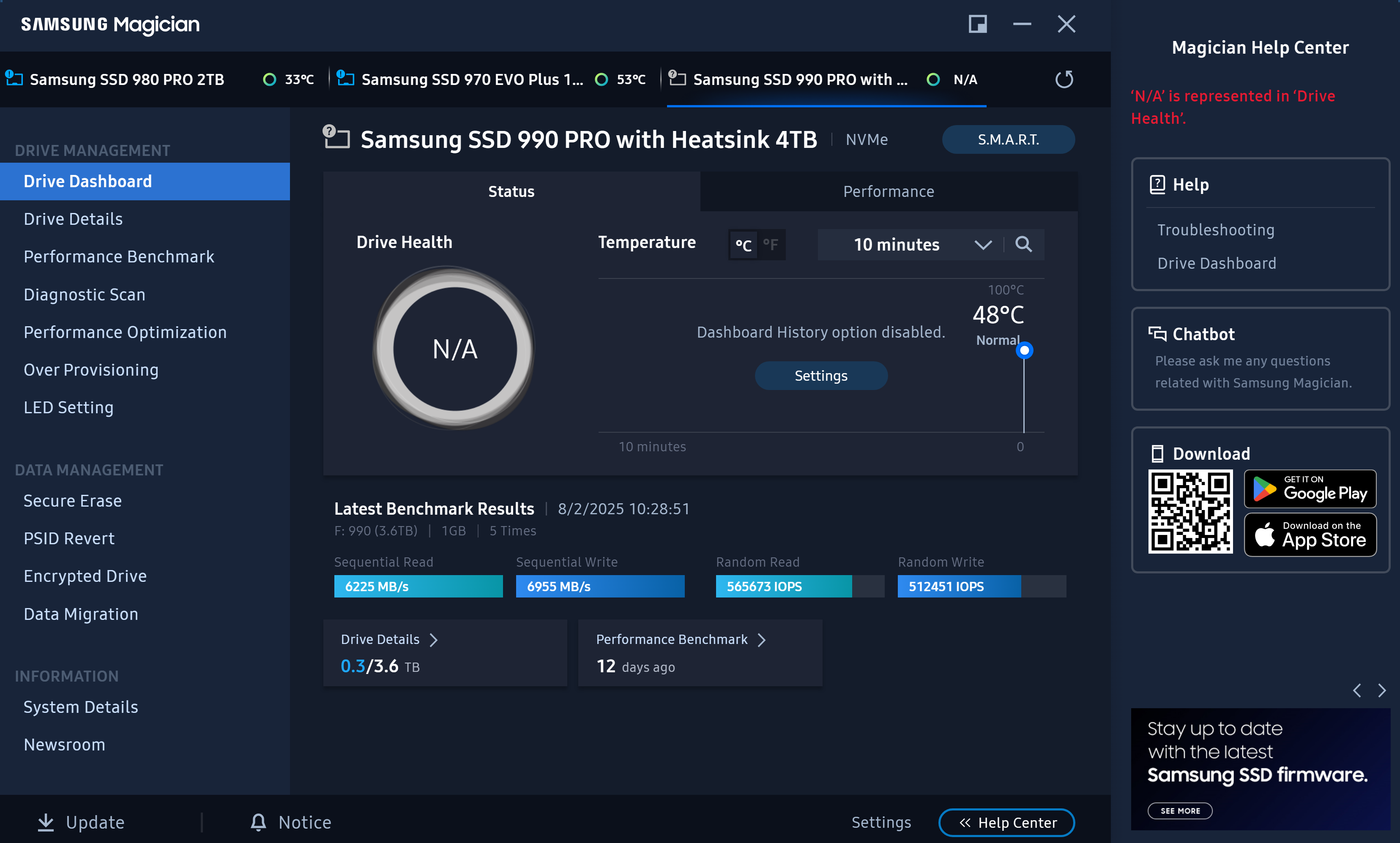> Samsung Magician Лолкек, найс купил 980про в регарде год назад. Хотя коуплю что это выебоны магициана который не всегда распознавал старый 850эво, но от встроенного бенча совсем грустно.