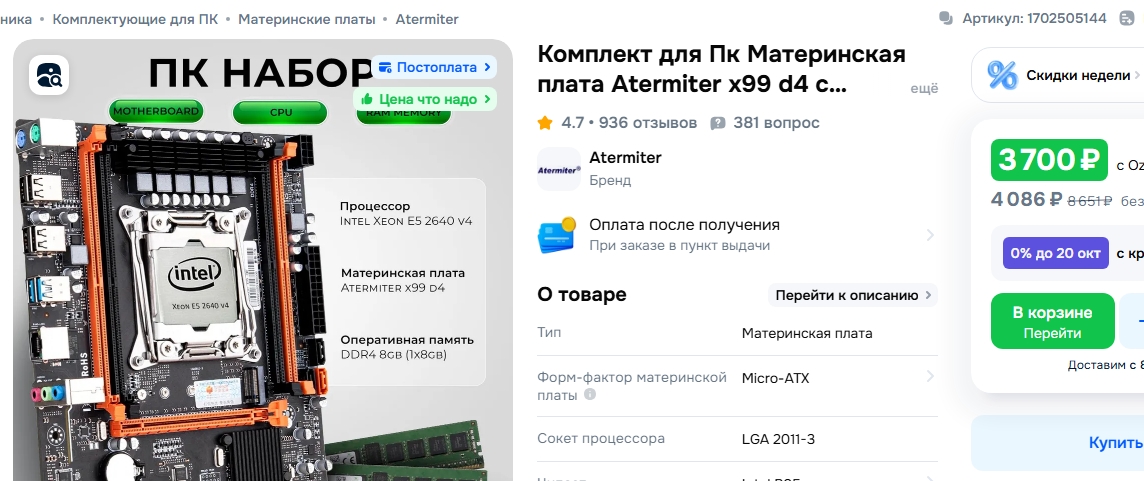 >>7472714 Собирать самому дешевле, но есть ситуации, когда покупка комплекта предпочтительнее, вот 3 варианта. Предпочтительный комплект 2643в4 16гб за 5к, предпочтительный вариант, переплата относительно самосбора +600р. Комплект 2 место 2640в4 16гб за 4к, переплата +300р. Комплект 2643в4+32гб, за 5.7к, переплата относительно самосбора +300р, 3 место т.к. +16гб не так необходимы в контексте бомжесборок, но смысл все таки есть и +16гб выходят дешево, за 700р. Но все меняется, если получится выгодно продать 32гб и купить 16.