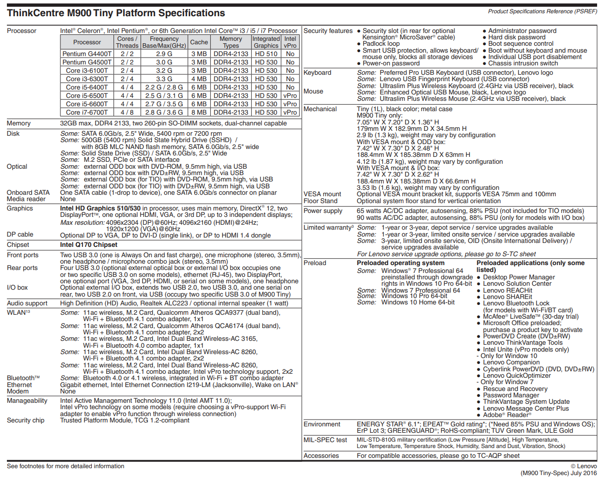>>7468437 > понимает ли он что-то кроме процов с префиксом Т Чел, перед тобой целый интернет же есть. Вот на озоне с i3-6100 его продают. https://ozon.ru/t/25YjaG0 А значит он работает не только с Т. Вот челики моддят биос, чтобы дешманские g4600 заводились, и в общем поколение кэби лейк, i3-7100 например. По дефолту коробка эта только со скай лейками работает. > M900 tiny за 3200 без ОЗУ, ПЗУ, вероятно без БП отдают Ну вообще за плату с корпусом это даже дороговато, я аналогичные тыщи за 2 видел, руки чесались, но итак до хера пекарен. В целом и за 3 сойдёт. Довольно интересный опыт иметь мелко пеку такого плана. У меня 1150 есть как раз на i3-4130T. > сисиди 128гб ещё 1к Лучше бери на 240/256 сразу. Там разлёт цен небольшой. > жёсткий диск у меня предположим есть Имей ввиду он там 2.5", и там один 2.5" слот. И вроде под ссд m2 nvme. Но можно и сата ссд взять, если хард не нужен.