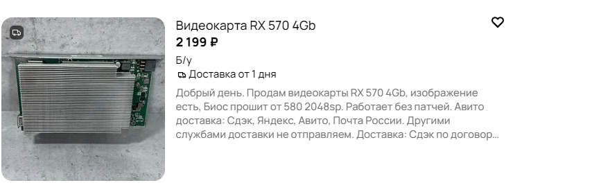 Поясните за авито, никогда там ничего не покупал. Для ультра бомж сборки присмотрел видеокарту, пока думал она стала в резерве, через день она опять стала доступна к покупке, но уже немного дороже и так несколько раз на день меняется статус. Это продован что-то мутит? Как вообще там покупать? Мне желательно без обкашливания вопросиков просто купить с авитодоставкой.