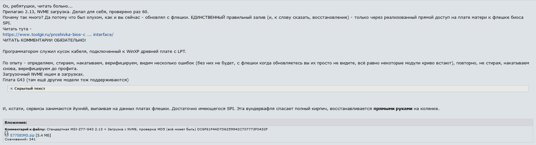 >>7474160 То есть я должен поверить дауничу с оверов, что z77 шьется только из-под программатора, хотя блядь для его платы биос для прошивки из-под биоса на сайте производителя лежит? Ну сомнительно же.