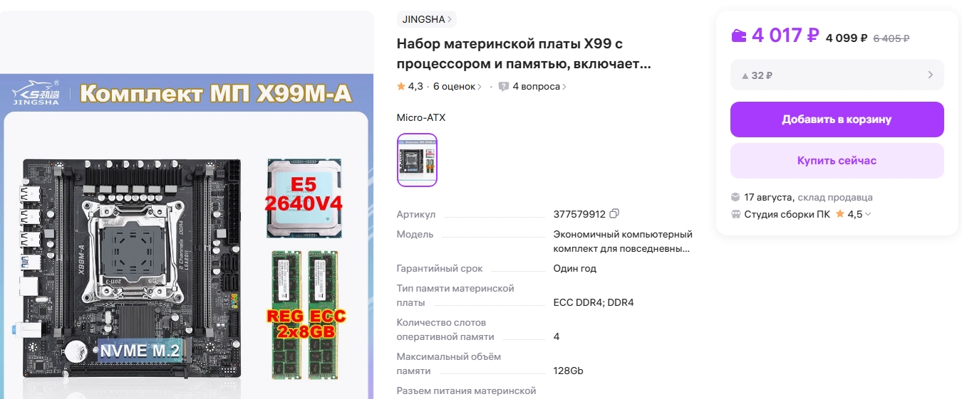 Если брать 2643в4+16гб то выйдет за комплект 4.4к, это дешевле готового комплекта на 600р + атх мать. Если ужиматься для ультра лоу, то будет 2640в4+8гб за ~3к