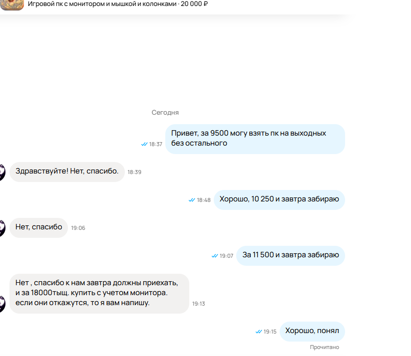 >>7474934 Ну да, но тут можно пропустить кристалльно честных васянов, впервые продающих что-то. Во времена ковида помню именно у нулевых аккаунтов в битве на скорость с перепуками купил процессор и плату по самой низкой цене.