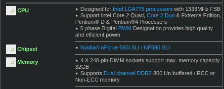 Если эта плата реально может в 32 гига ддр2, то это сводит на нет барыг с монструозными ценами на 4-гиговые совместимые с интелом плашки типо PSD24G8002, для владельцев этих плат, естественно