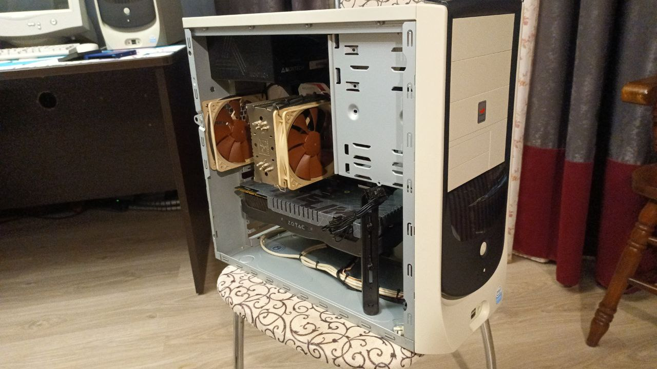 >Ещё нужно, чтобы не было входных/выходных воздушных отверстий с боков. да, это реально лажа современных корпусов. Тупорылые зуммеры доросли до работы в бюро и утратили понимание, что лучшая вентиляция будет в трубе. Прям как на старой рабочей станции от яблока.