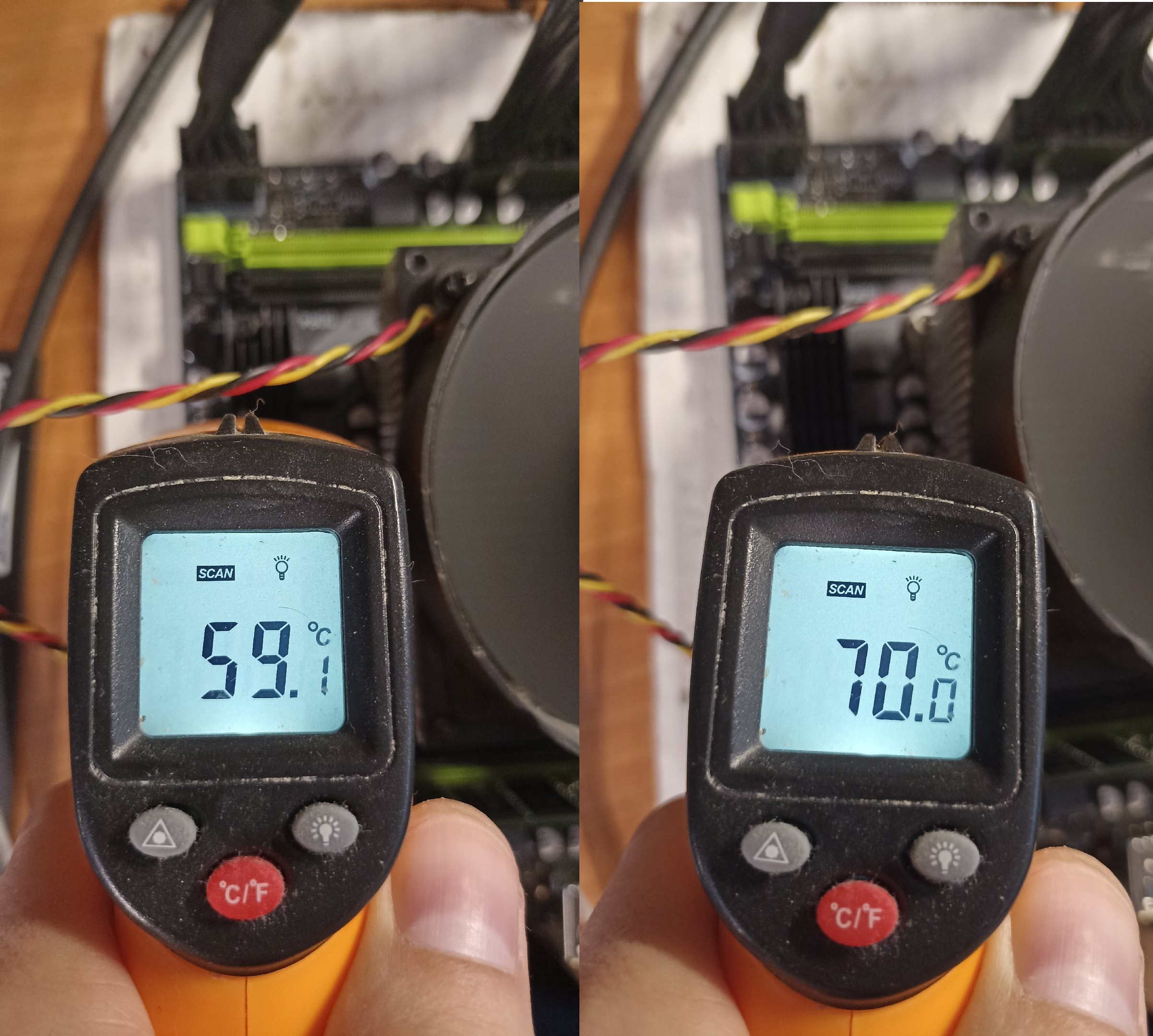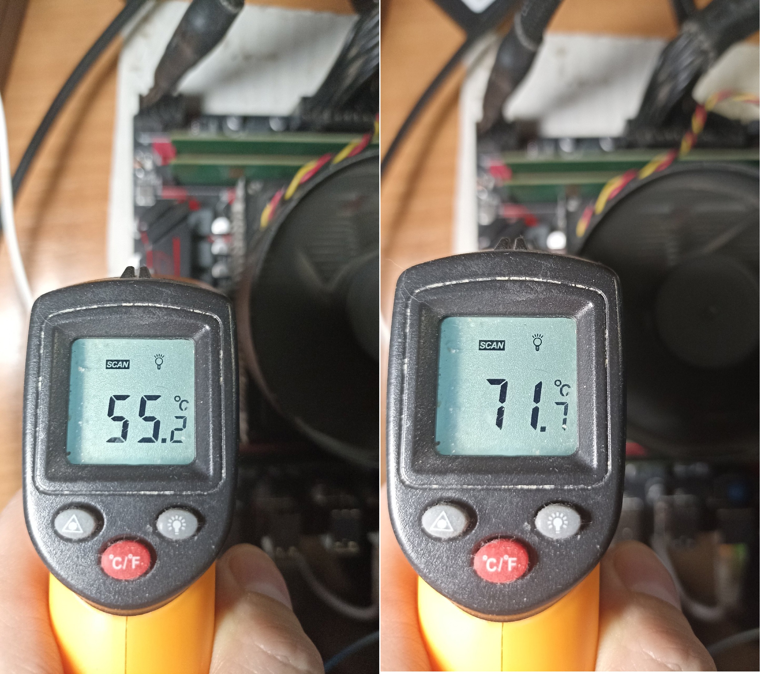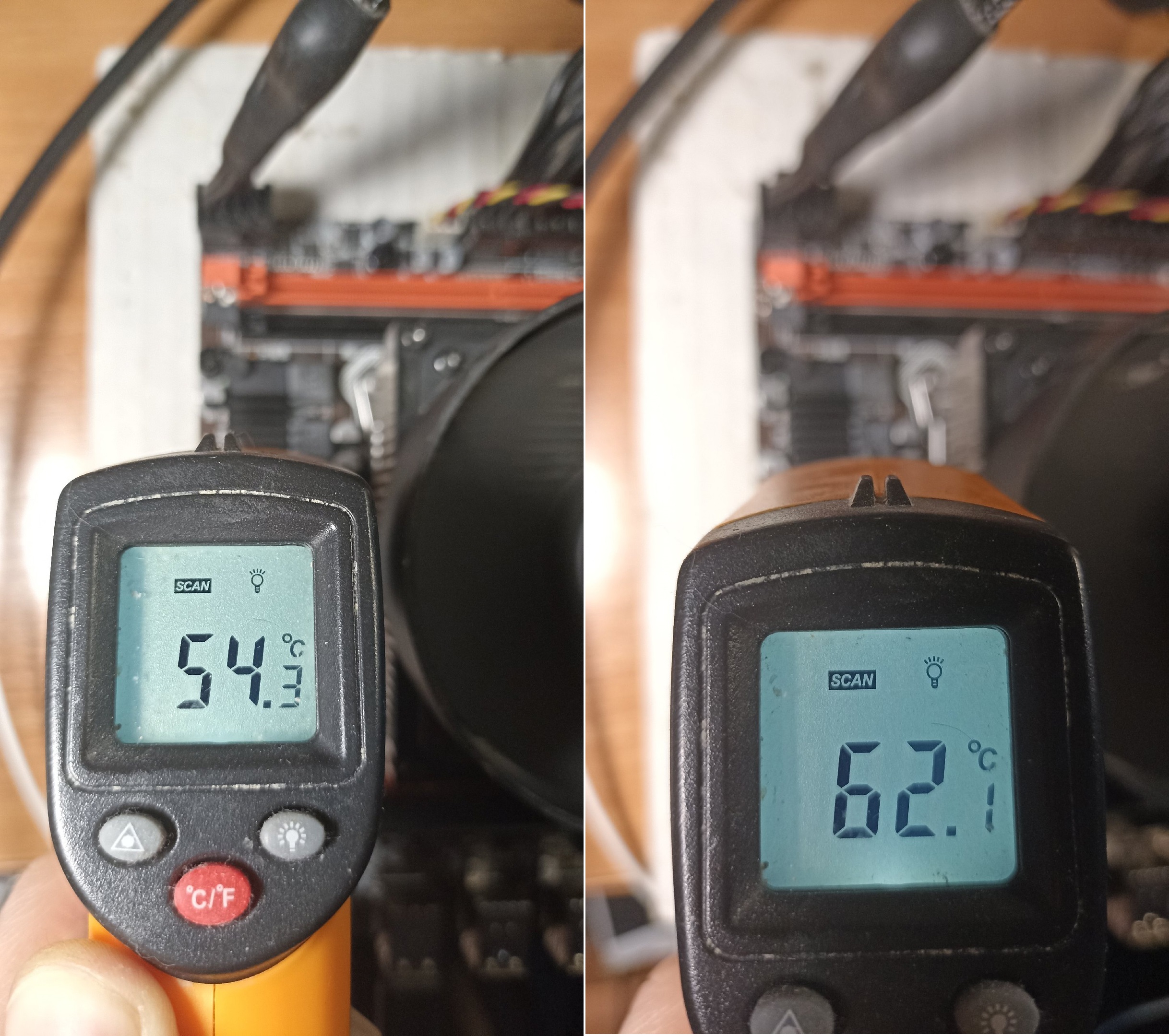 >>7479238 >замер с радиатора Какой смысл мерить температуру на радиаторе? Из-за прокладки там будет показывать погоду на марсе, причем каждый раз по разному. Мерить надо на мосфетах, либо на текстолите вплотную к ним, где минимальное тепловое сопротивление.