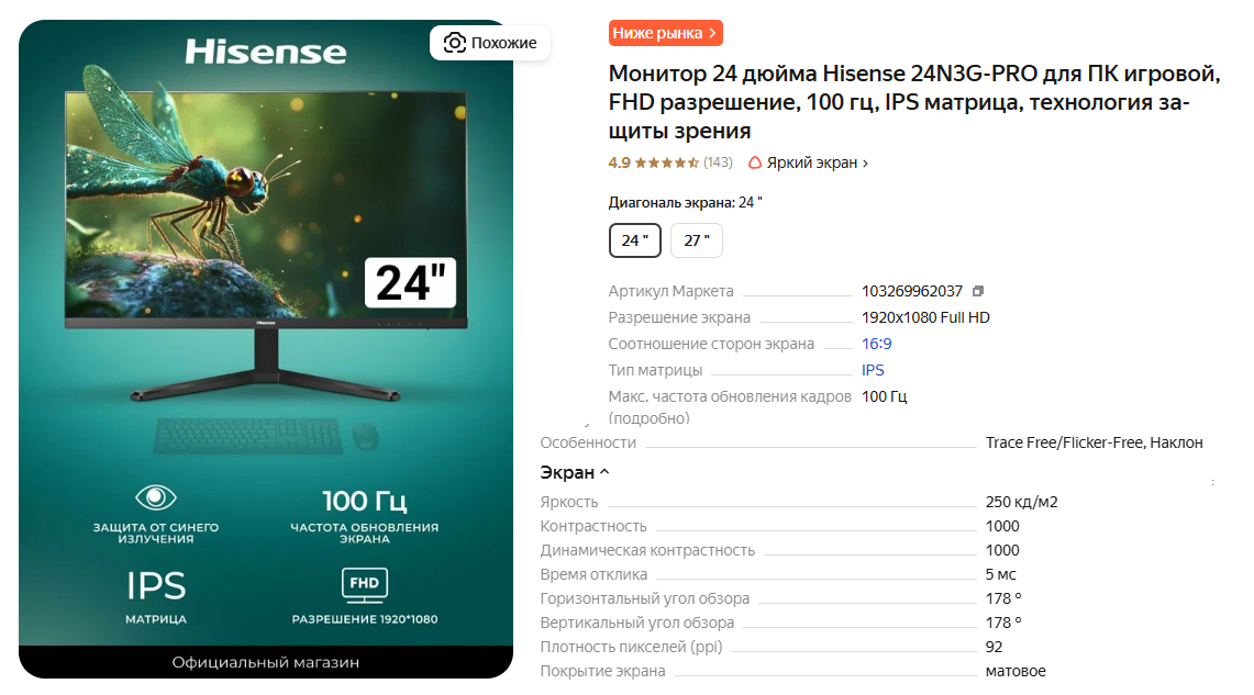 Бомж-гейминг не может без монитора. Что взять из всего ноунейм китайского кала с озона/вб/яндекса? Я конечно же перед заходом сюда, сам выбрал варики, показываю, че скажите? Может есть лучше?