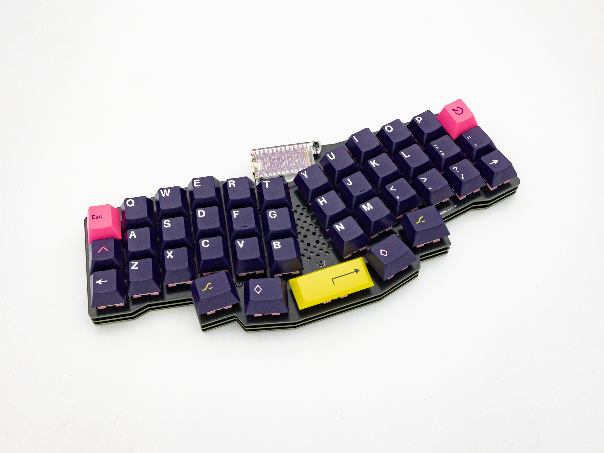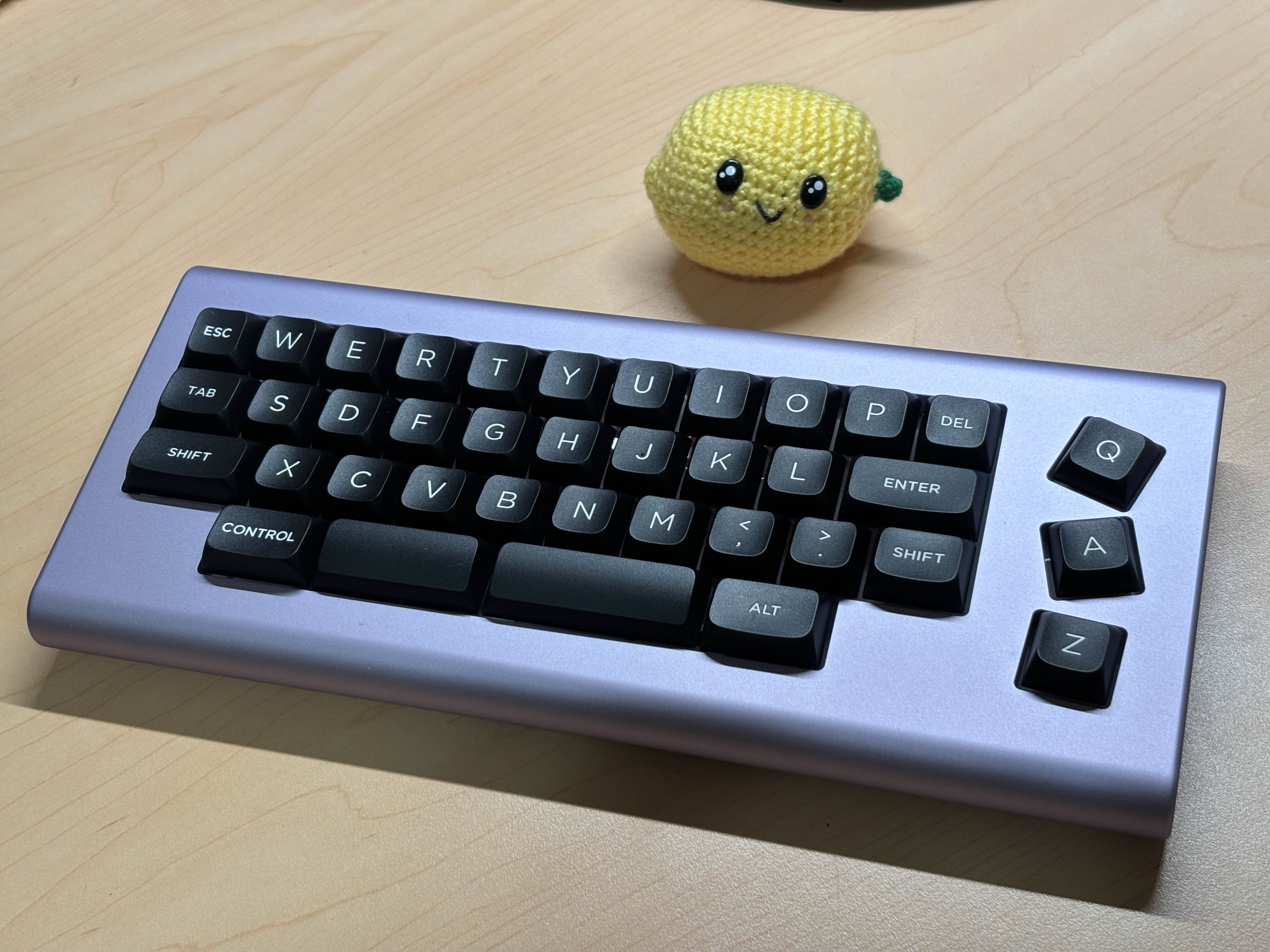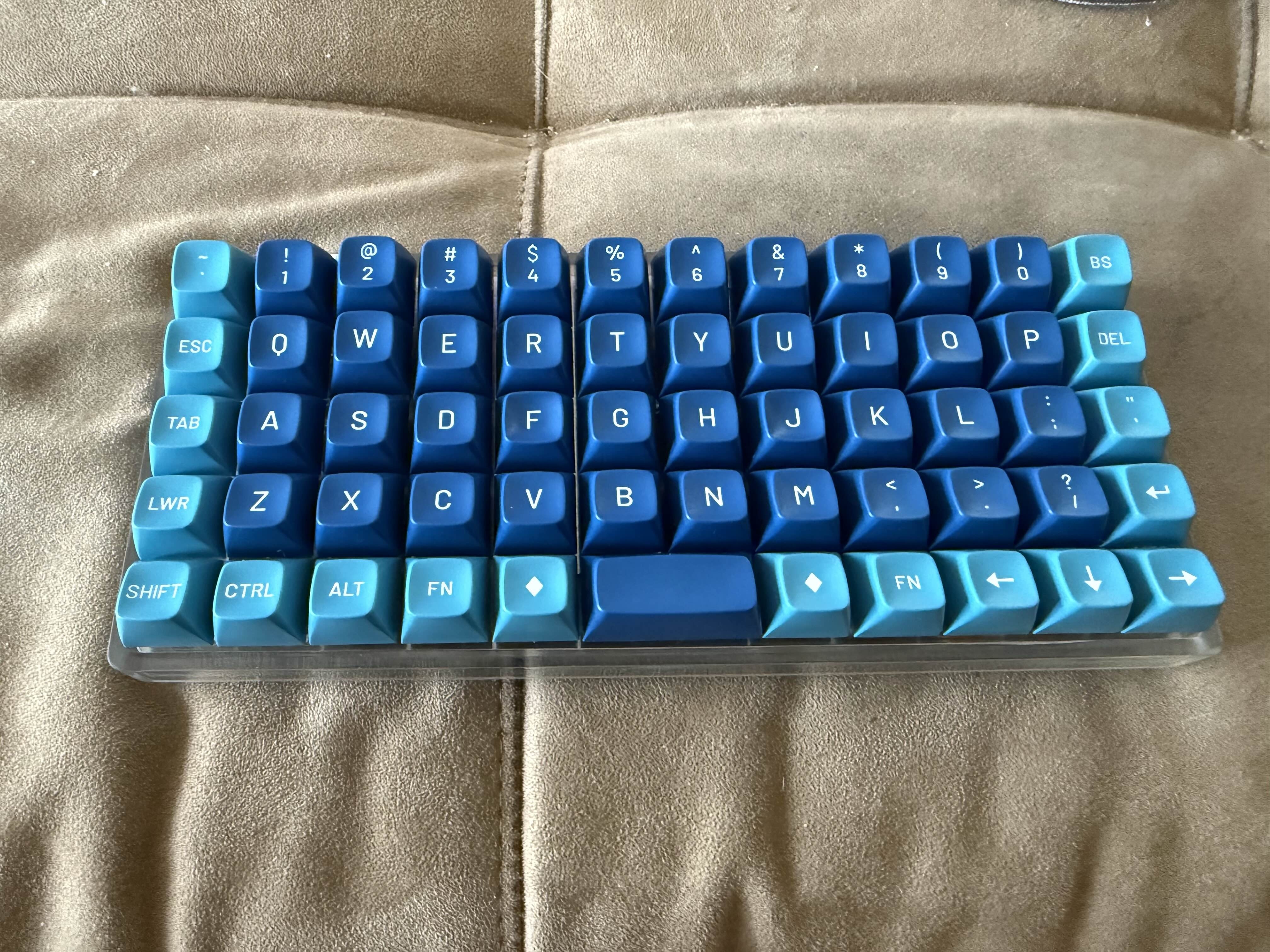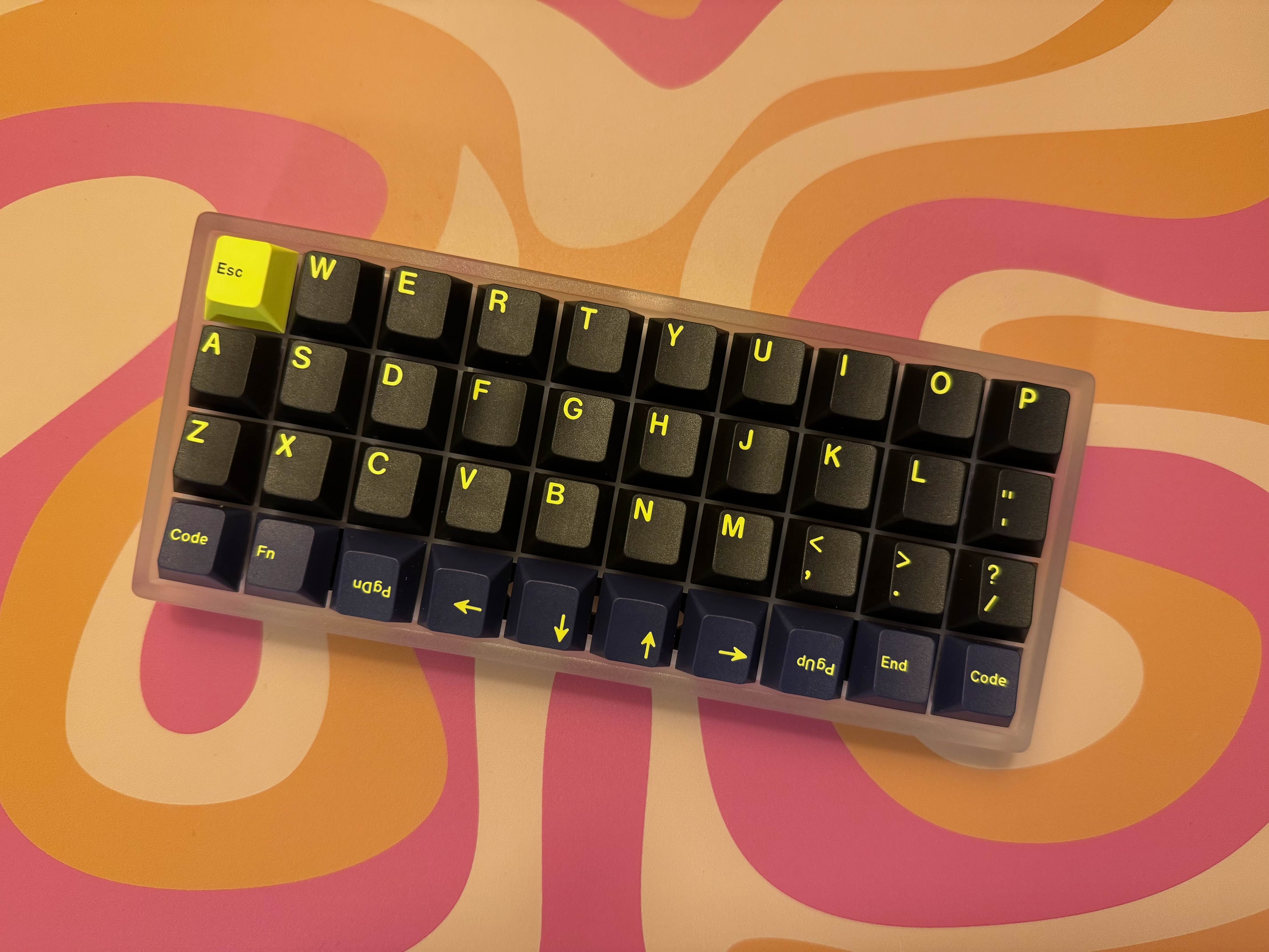 Обожаю эту штуку. В отличие от других 40%, тут кириллица целиком влезает, ну и вообще очень приятная тактильно штука. Брусок под килограмм весом, гаскет маунт, очень кайфовые свитчи Zebra. Есть via. А есть еще 40% с полными рядами?