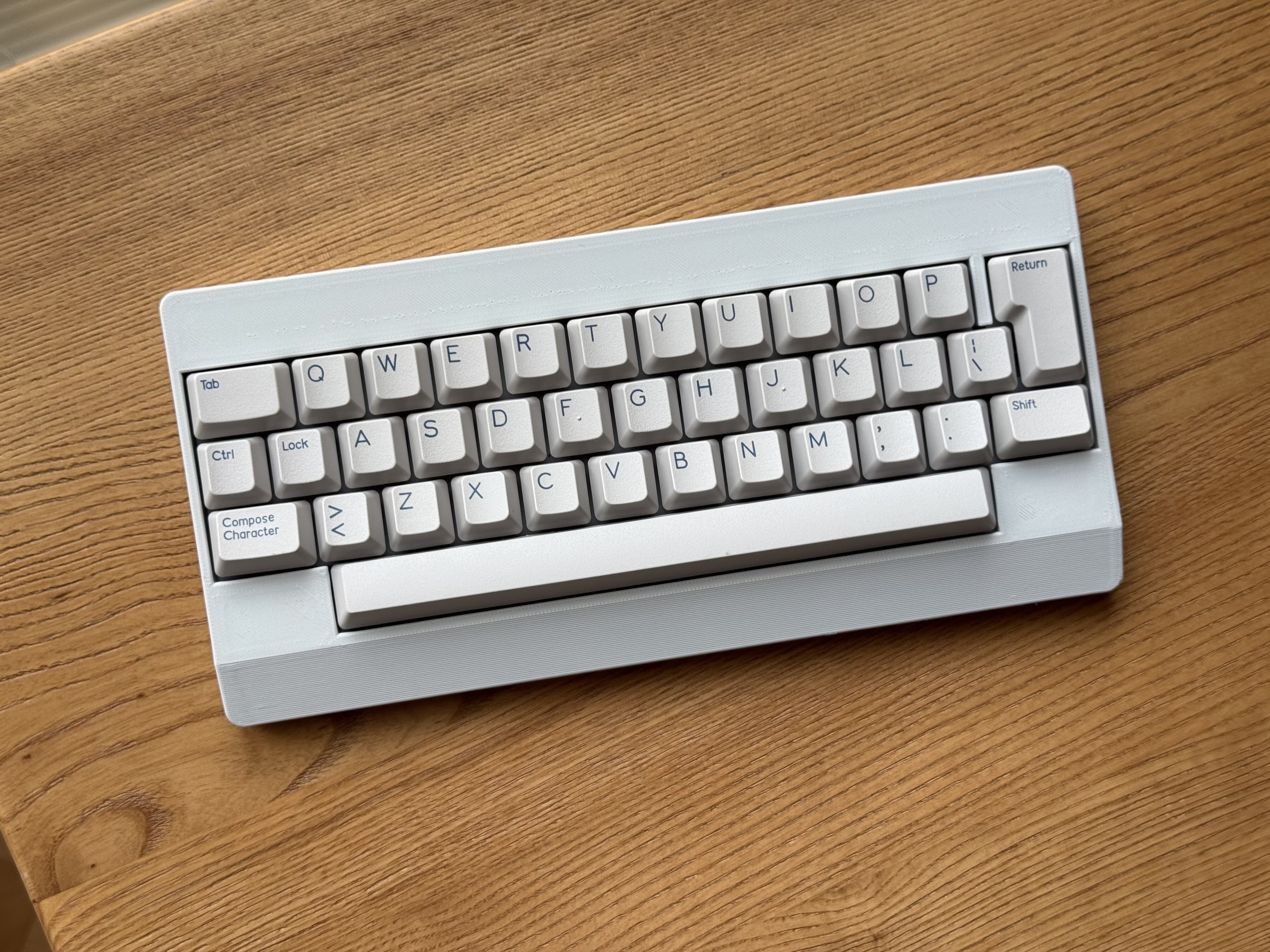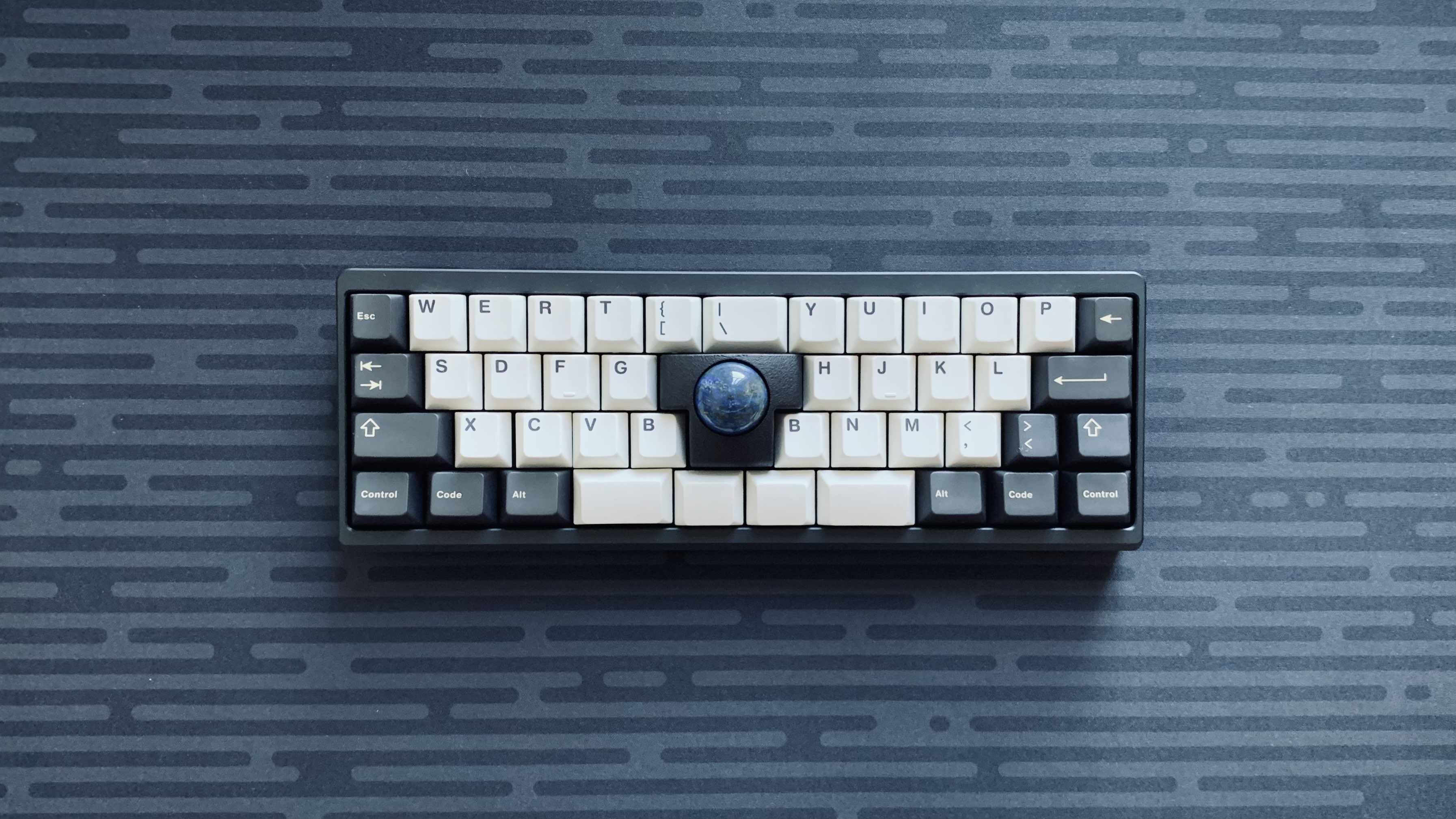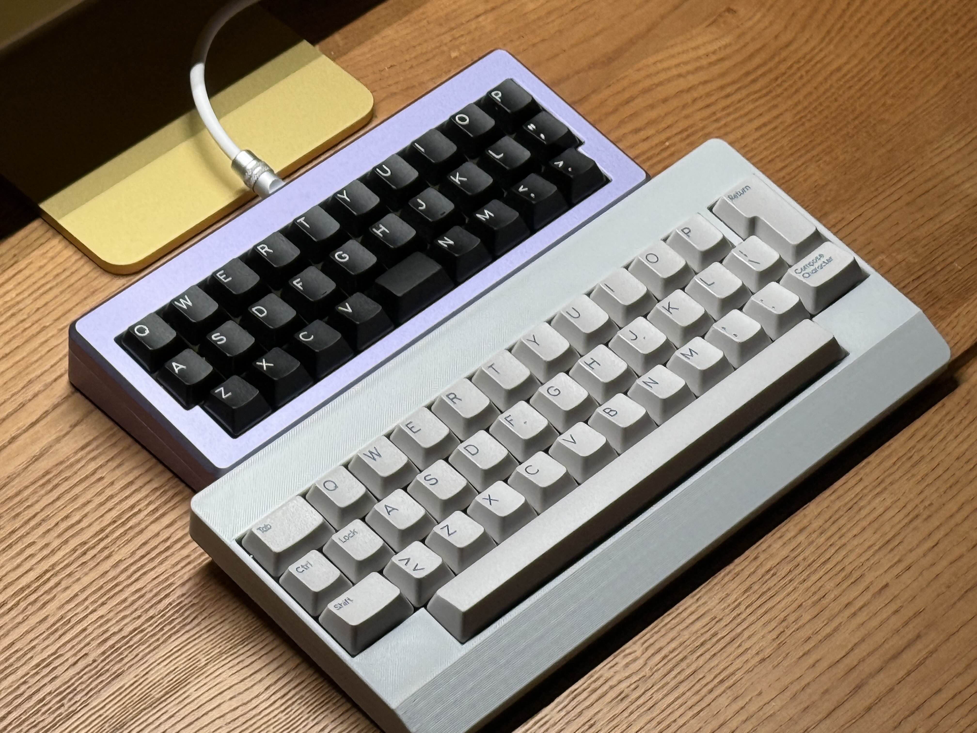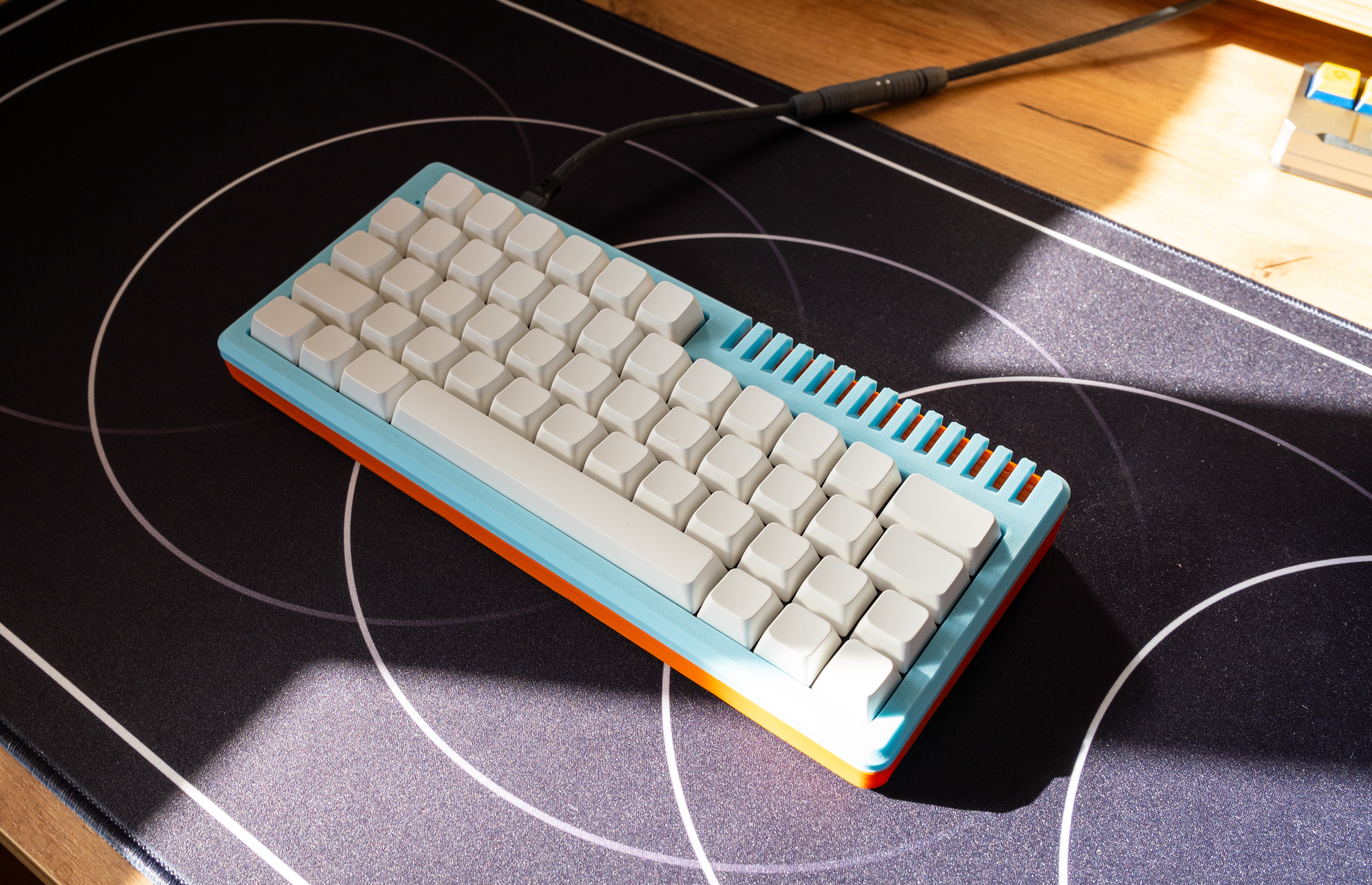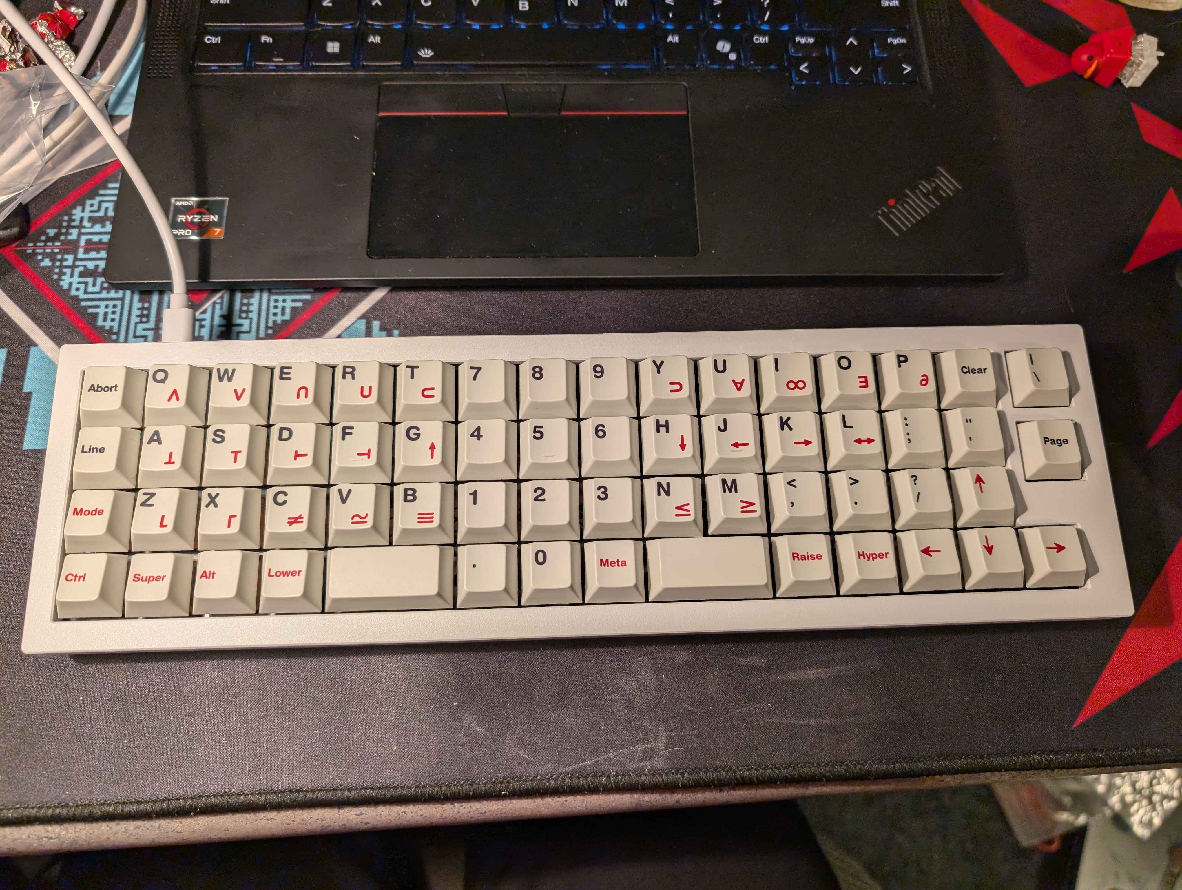 Обожаю эту штуку. В отличие от других 40%, тут кириллица целиком влезает, ну и вообще очень приятная тактильно штука. Брусок под килограмм весом, гаскет маунт, очень кайфовые свитчи Zebra. Есть via. А есть еще 40% с полными рядами?