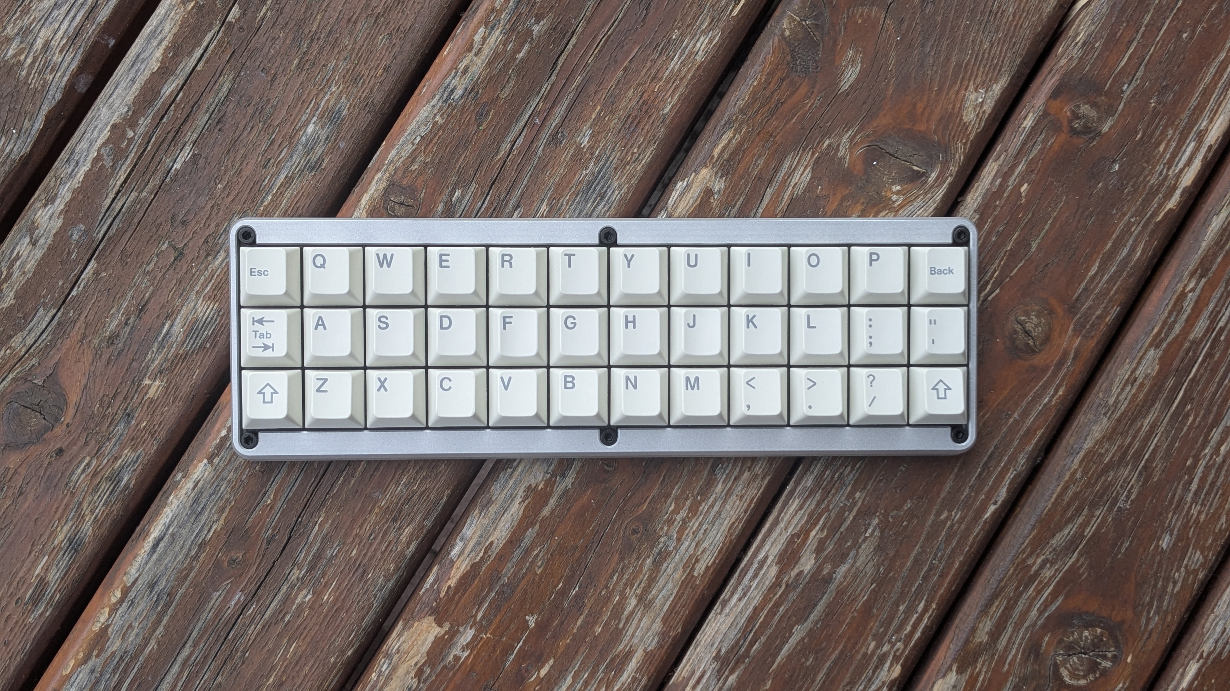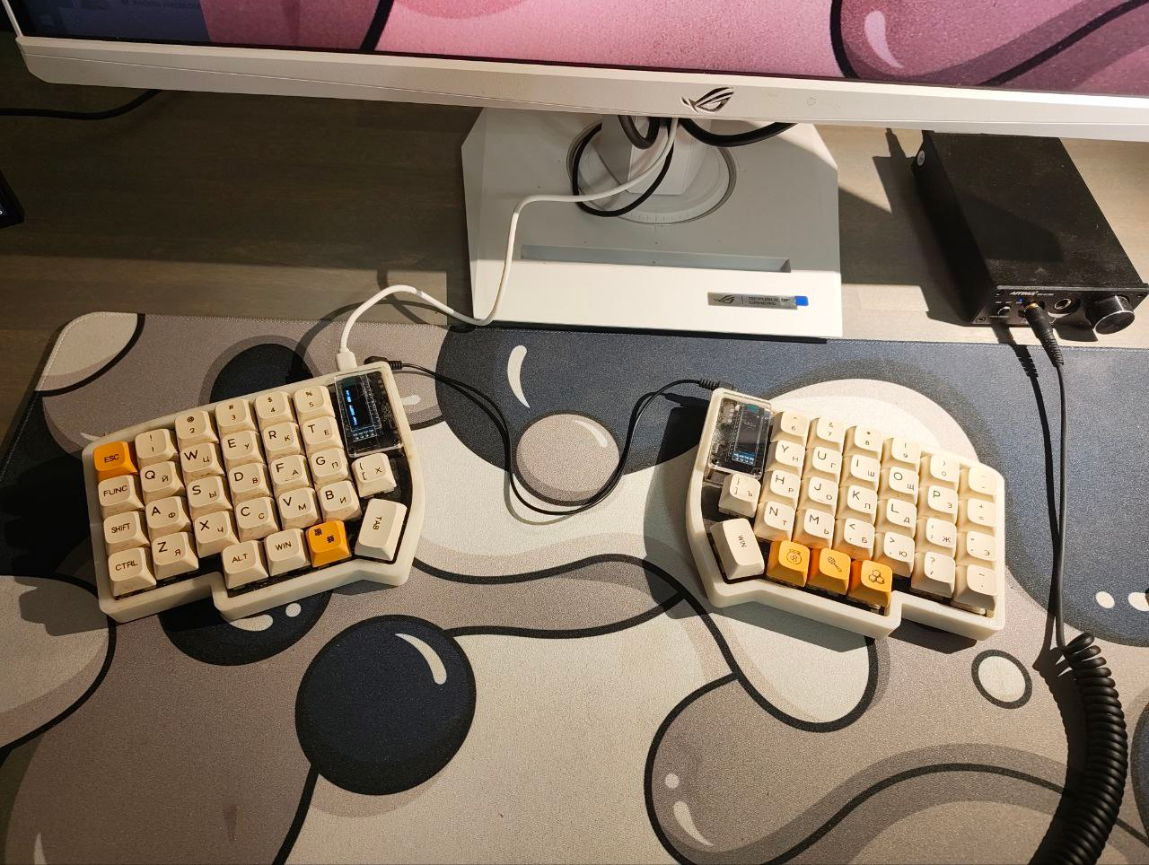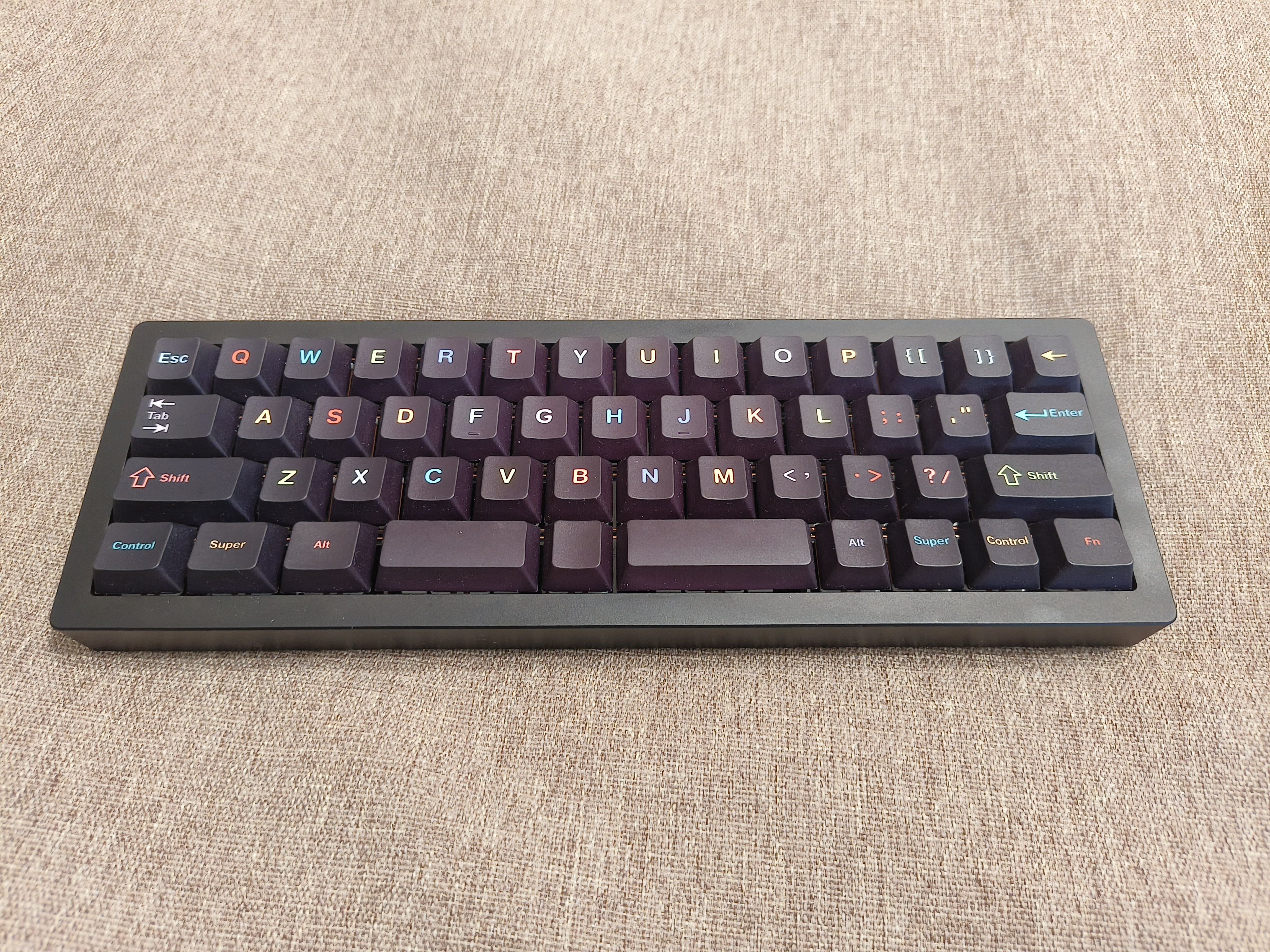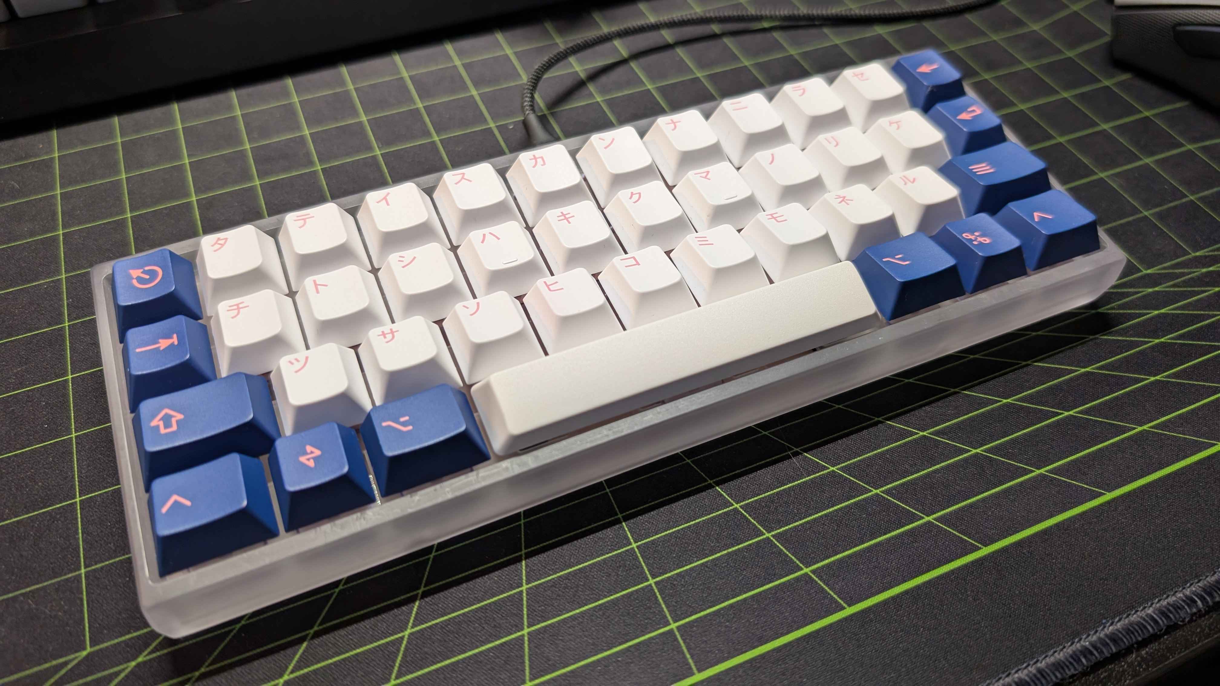 Обожаю эту штуку. В отличие от других 40%, тут кириллица целиком влезает, ну и вообще очень приятная тактильно штука. Брусок под килограмм весом, гаскет маунт, очень кайфовые свитчи Zebra. Есть via. А есть еще 40% с полными рядами?