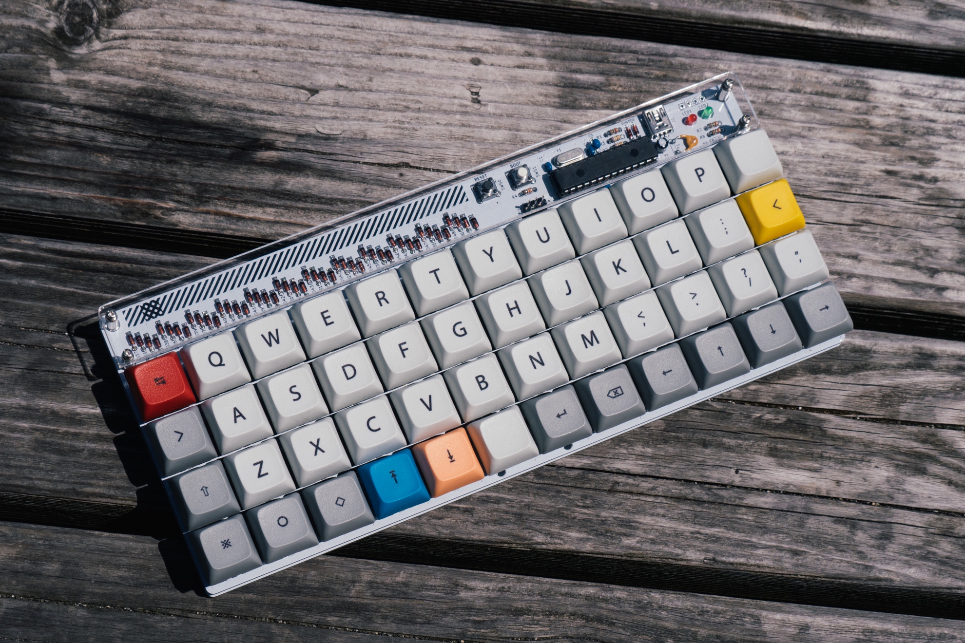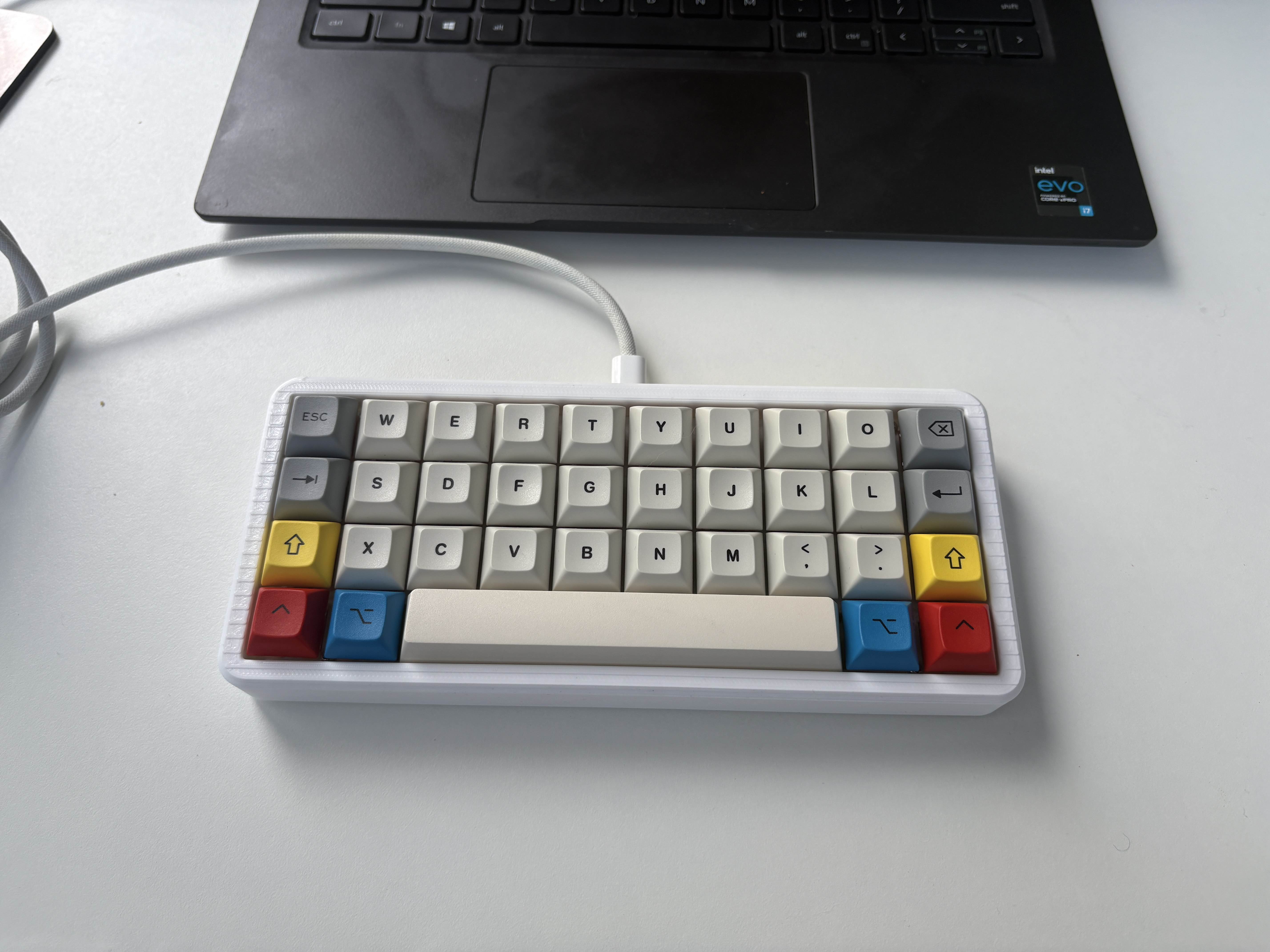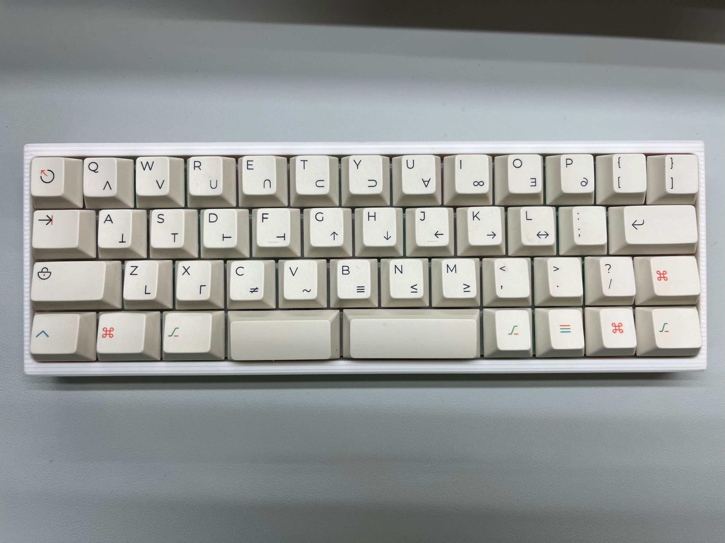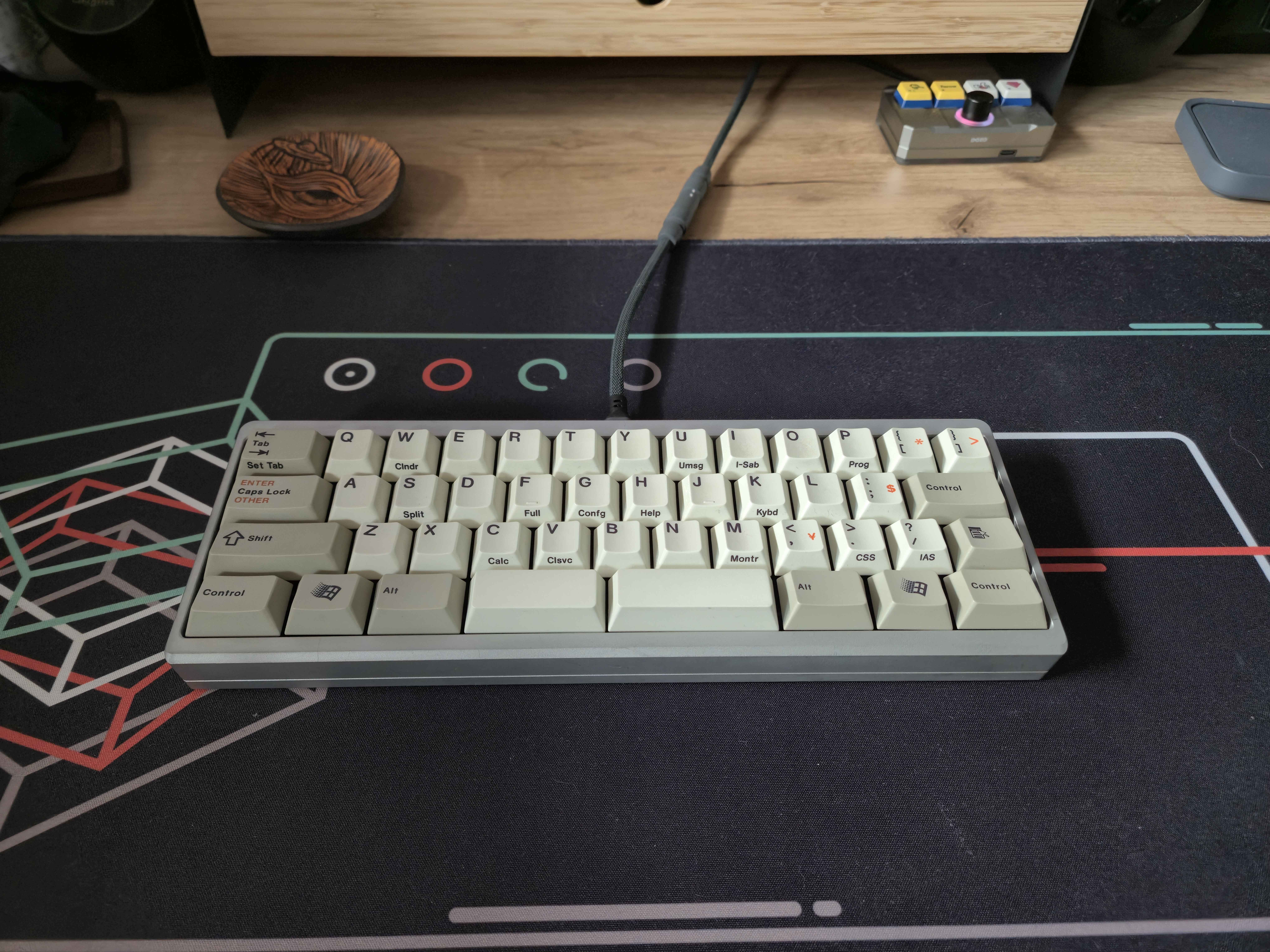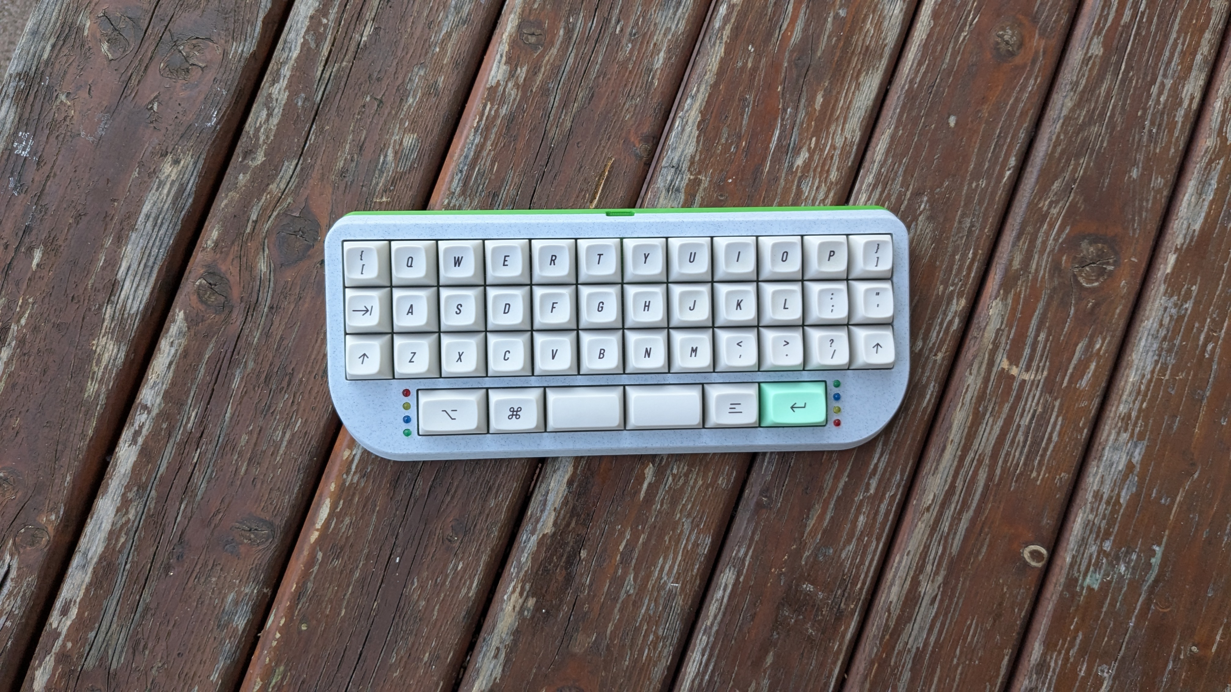 Обожаю эту штуку. В отличие от других 40%, тут кириллица целиком влезает, ну и вообще очень приятная тактильно штука. Брусок под килограмм весом, гаскет маунт, очень кайфовые свитчи Zebra. Есть via. А есть еще 40% с полными рядами?