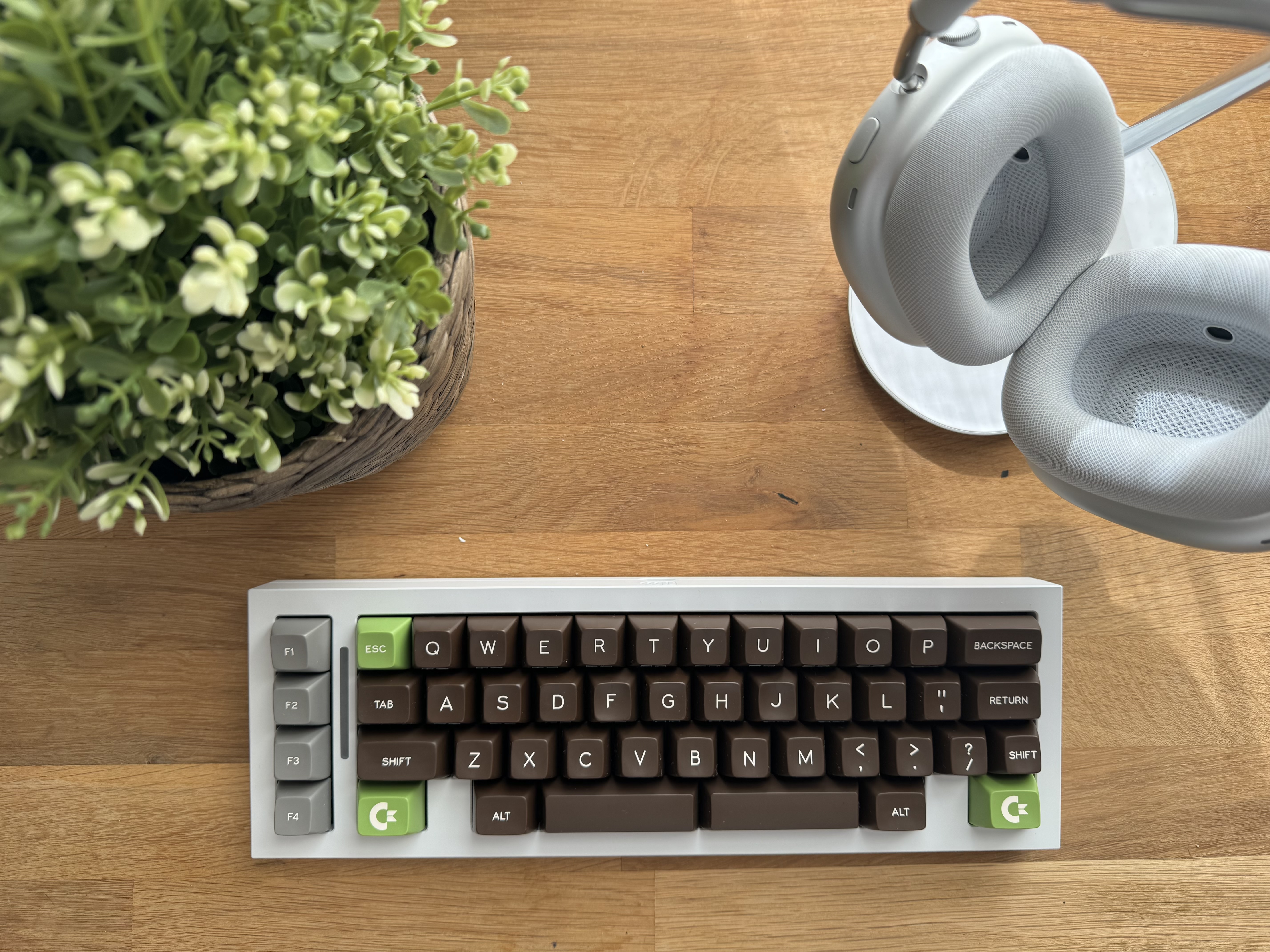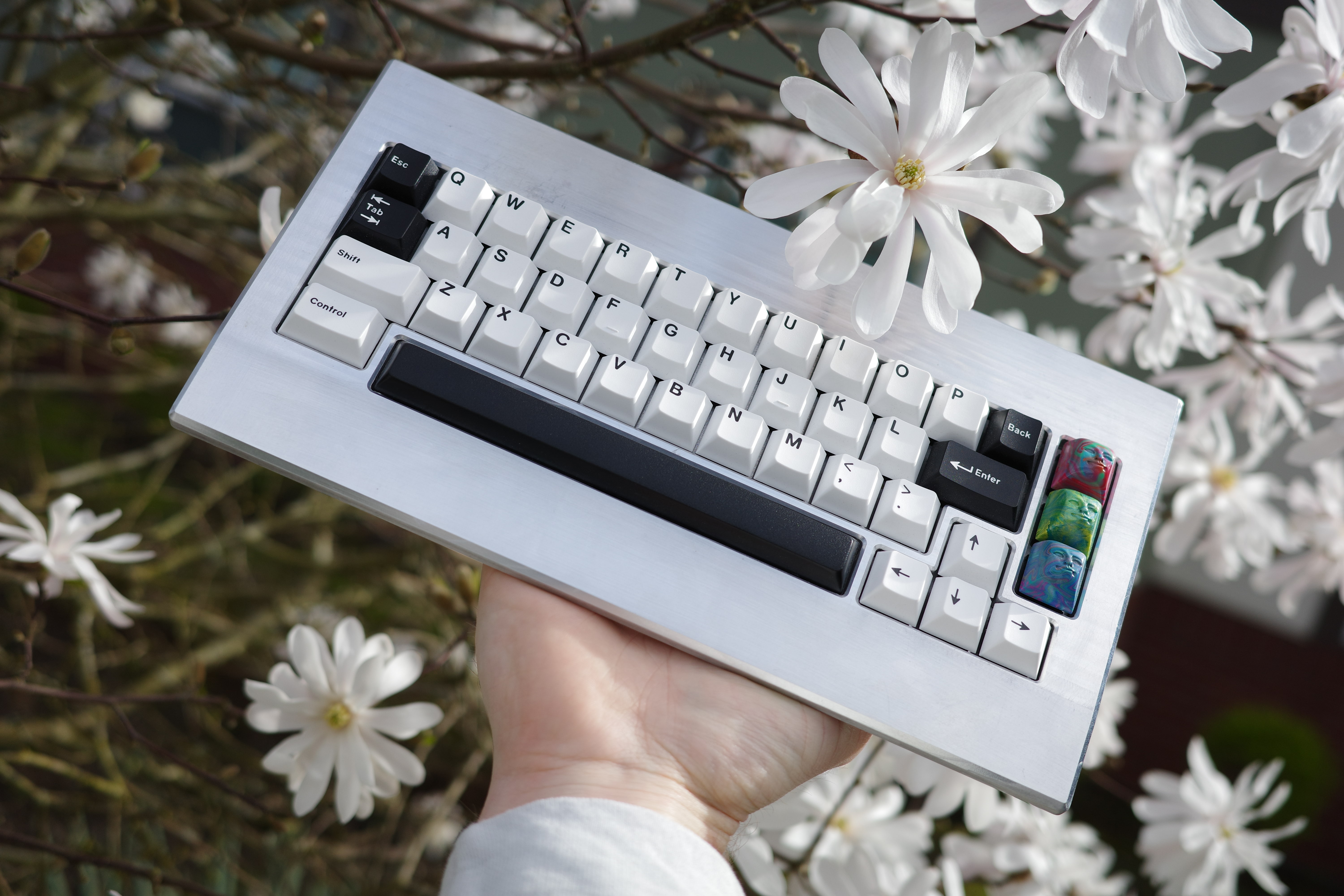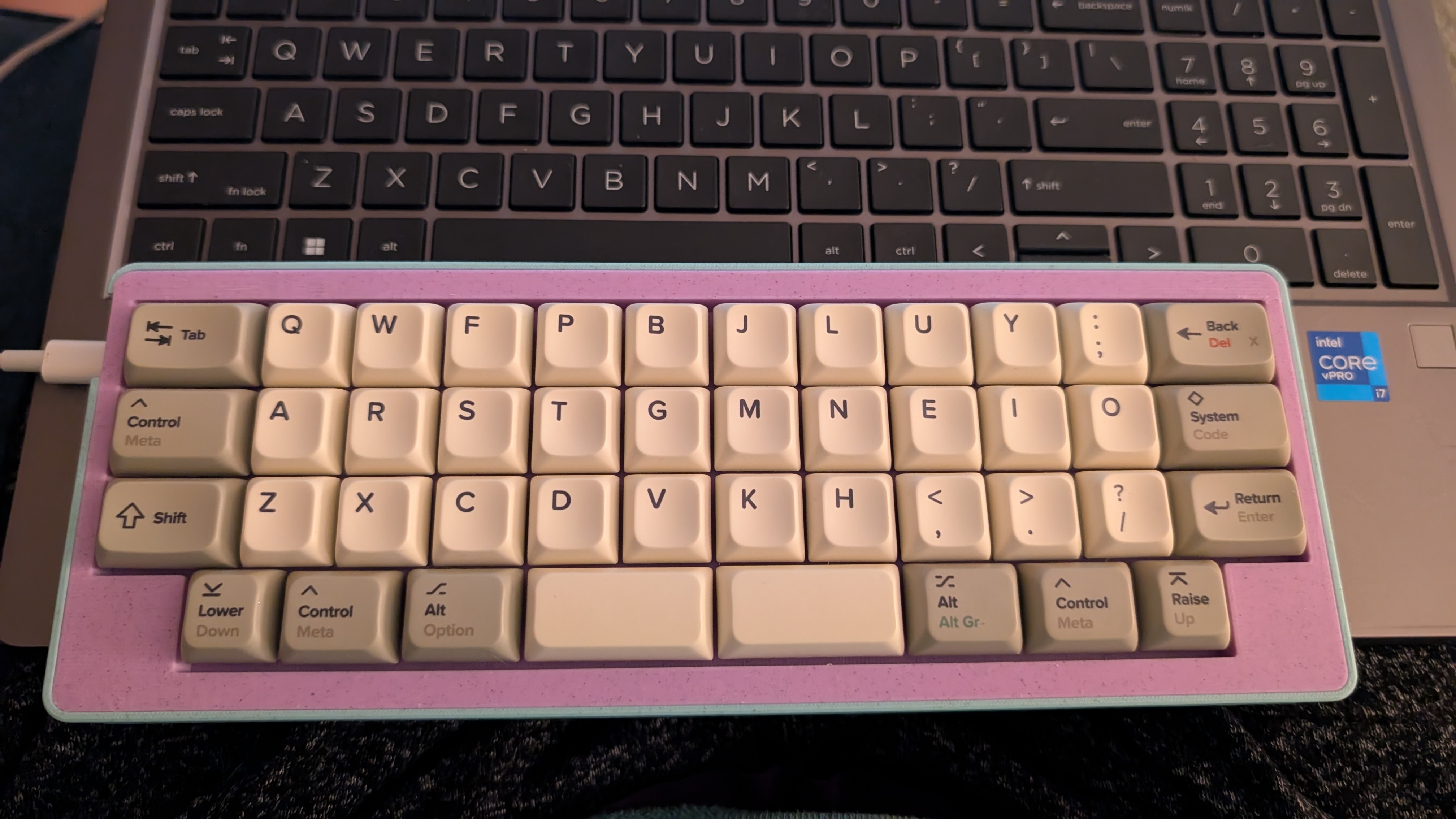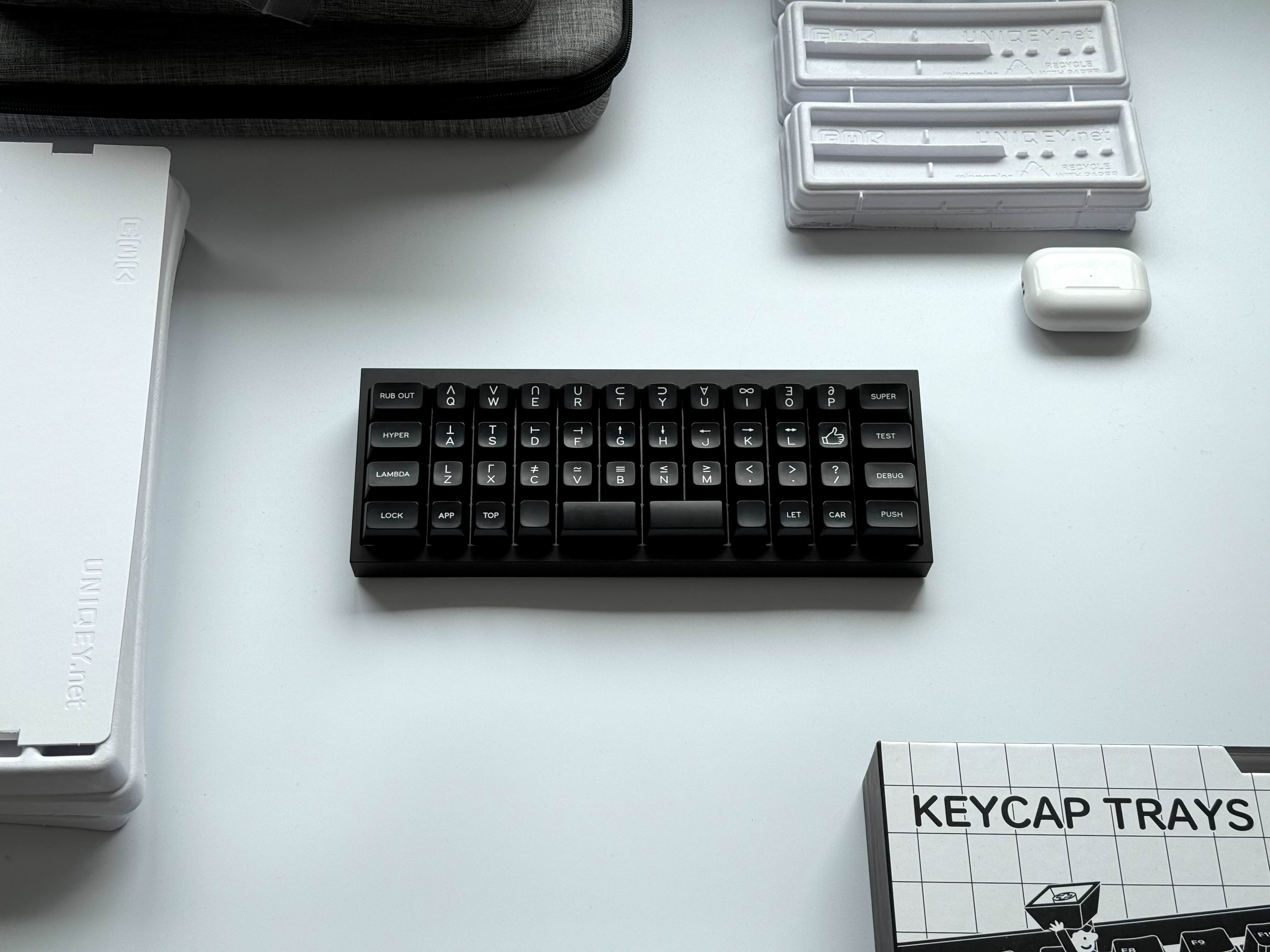 Обожаю эту штуку. В отличие от других 40%, тут кириллица целиком влезает, ну и вообще очень приятная тактильно штука. Брусок под килограмм весом, гаскет маунт, очень кайфовые свитчи Zebra. Есть via. А есть еще 40% с полными рядами?