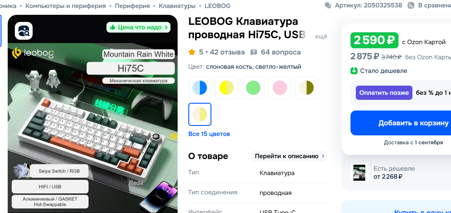 всем ку. нужна помощь в выборе. на данный момент имею фулл формат клаву 104 клавиши, чери блэк, подсветка, встроенный юсб хаб из того что хочется: 1. полный формат 104 клавиши (нужен нампад) 2. переключатели линейные 3. желательно комплектные кейкапы со сквозной подсветкой, что бы не покупать отдельно 4. желательно наличие usb-a для подключения носителей 5. провод или беспровод не принципиально 6. цена +- 10к деревянных 7. озон, вб и прочие маркетплейсы с доставкой до недели. то есть алик и ozon global желательно избежать, так как клава нужна сейчас