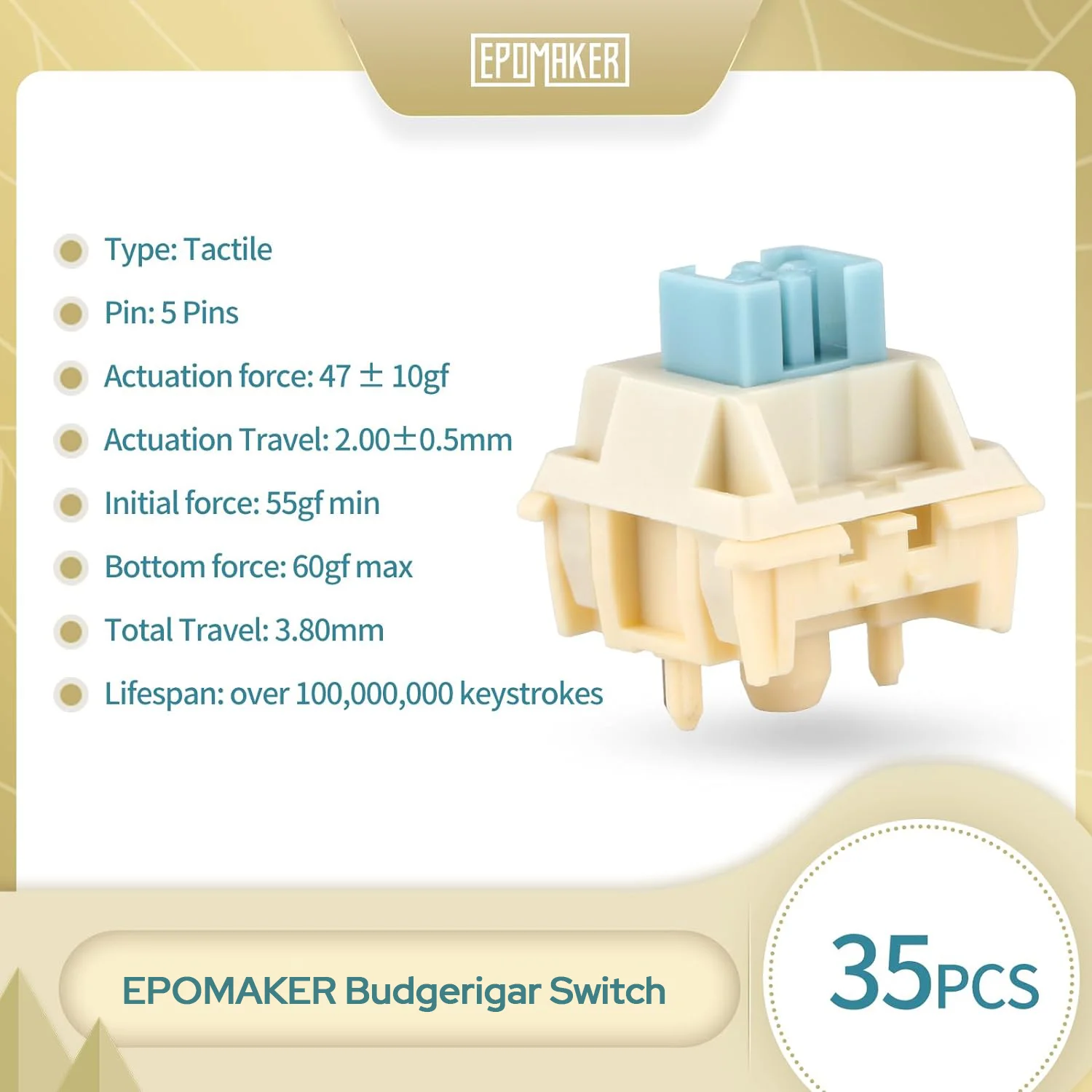 >>7495676 Пробовал тактильные свитчи Epomaker Budgerigar с усилием под 60 грамм. Звучат и ощущаются неплохо, но долго печатать невозможно - слишком устают пальцы. Думаю, что тебе зайдет. Бери базу нужного размера и ставь их туда.