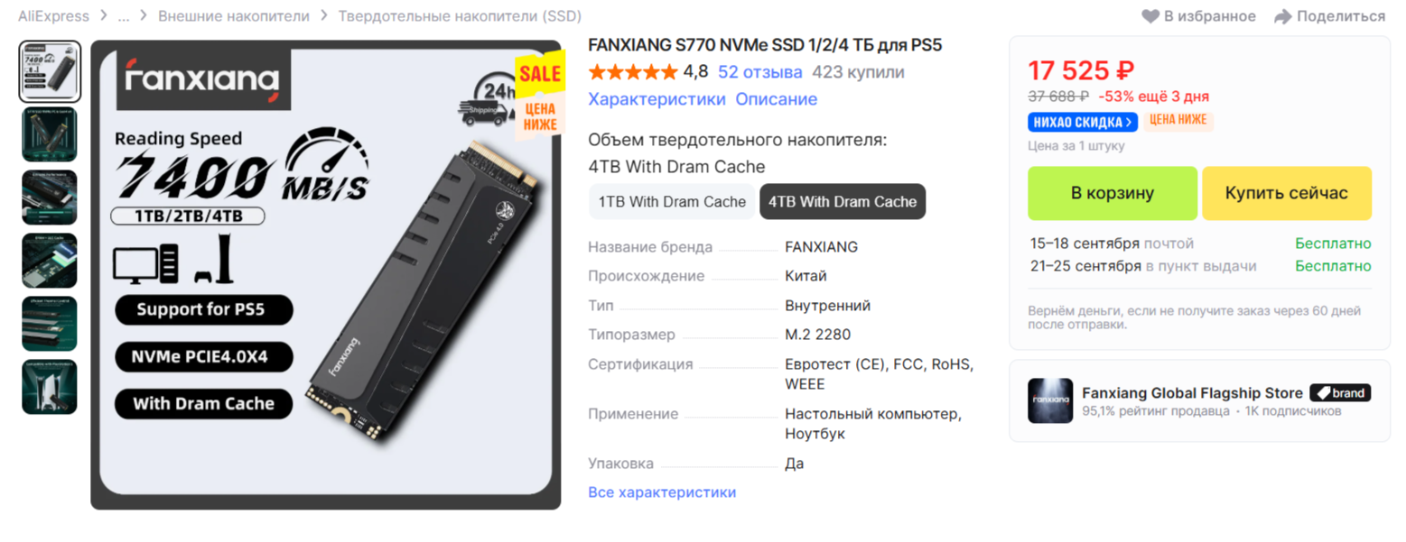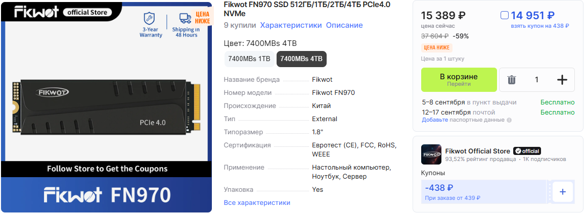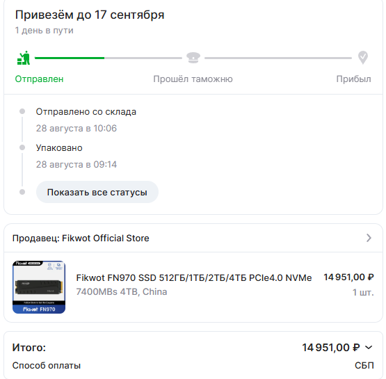Я чёт трясанулся, и заказал. >>7496684 я же Без оплаты, просто заказал на доставку в магазин, там может полежать пару дней. 4терабайтник стоит дороже, чем две по 2. две по 1 стоят дороже, чем двухтерабайтник. s770 на вб стоит дороже, чем пик. Разве что с алика брать. Немного жаба душит, но ощущение, что я уже и не смогу ничего подобного урвать за такую цену. Хз почему вообще в сентябре на него понизили ценник. Особенно учитывая, что в двух тредах этот ссд считают одним из лучших выборов, а альтернативы дороже. Ну ещё раз спасибо тредику. Они ж не повысят цены уже после заказа до оплаты.